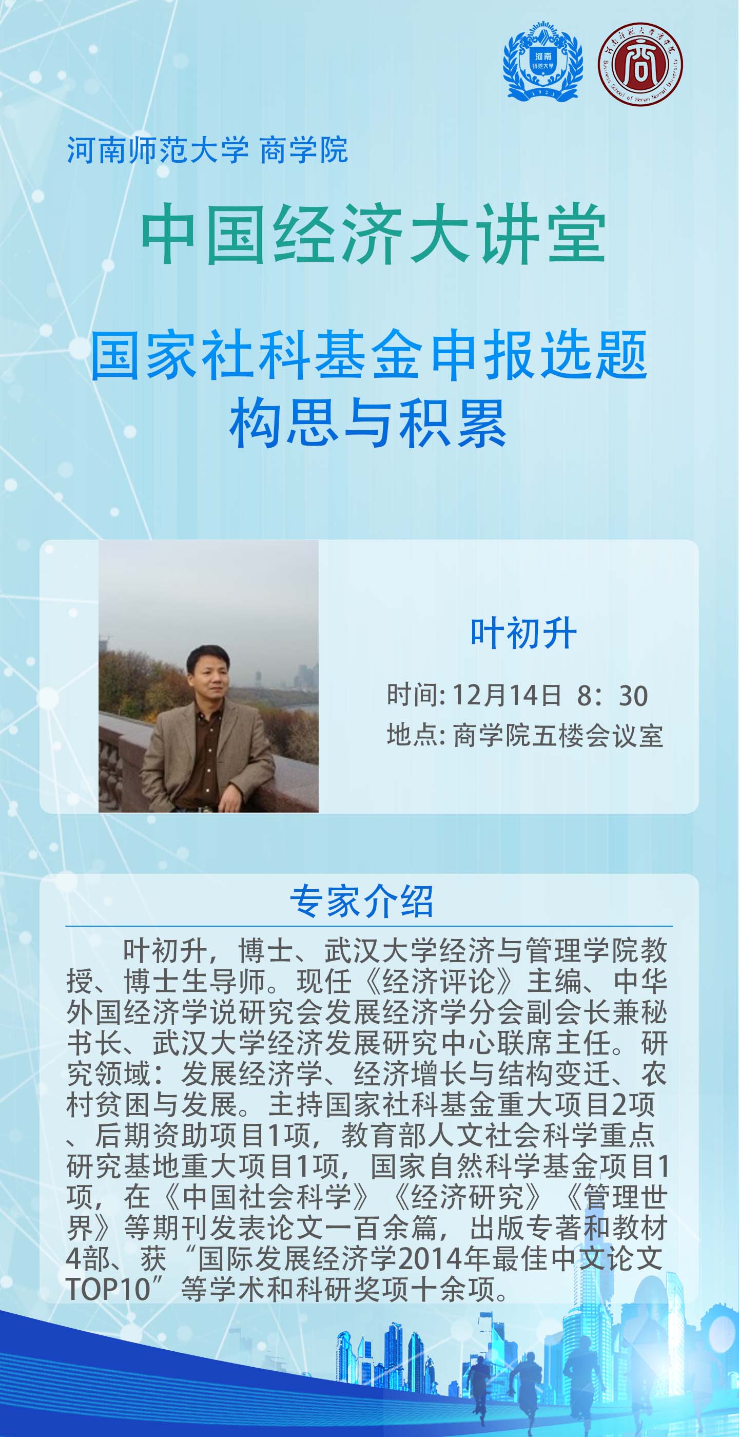 武汉大学经济与管理学院叶初升教授将应邀做客中国经济大讲堂