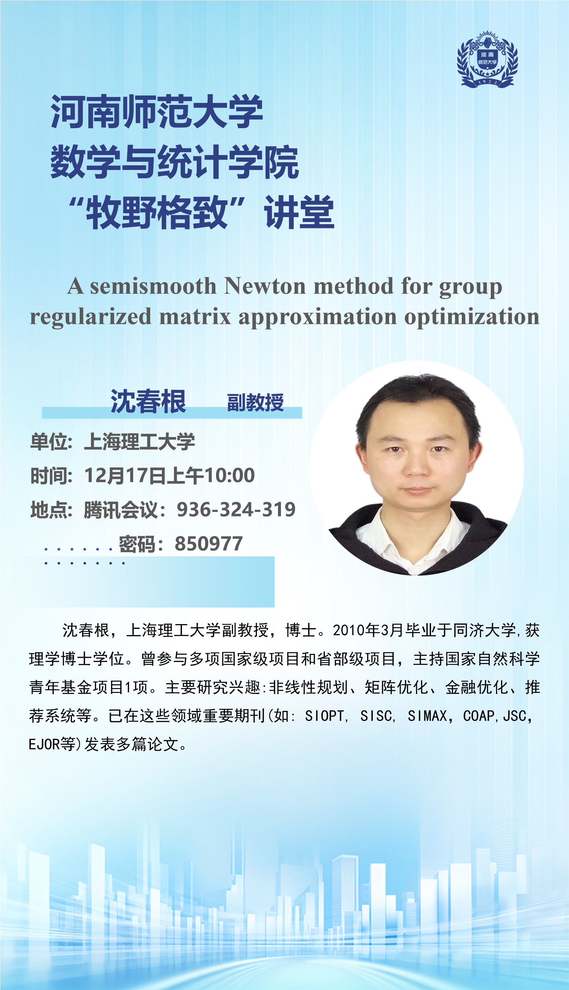 上海理工大学沈春根副教授将应邀做客“牧野格致”讲堂