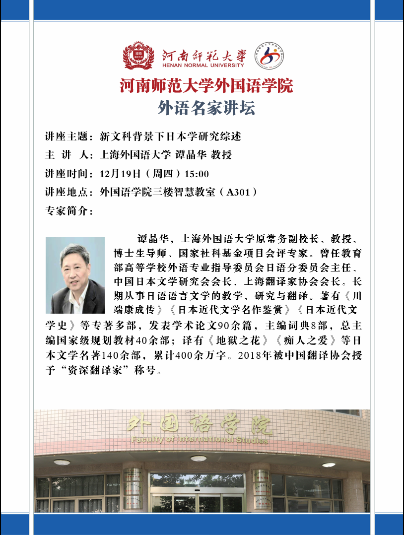 上海外国语大学谭晶华教授将应邀做客外语名家讲坛
