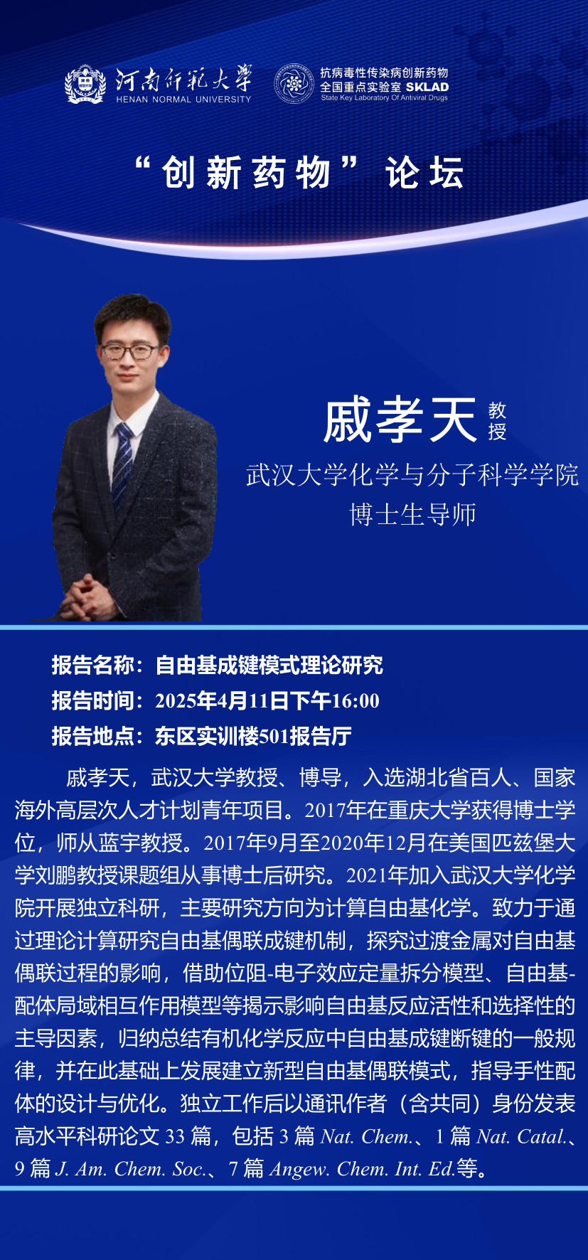 武汉大学戚孝天教授将应邀做客“创新药物”论坛