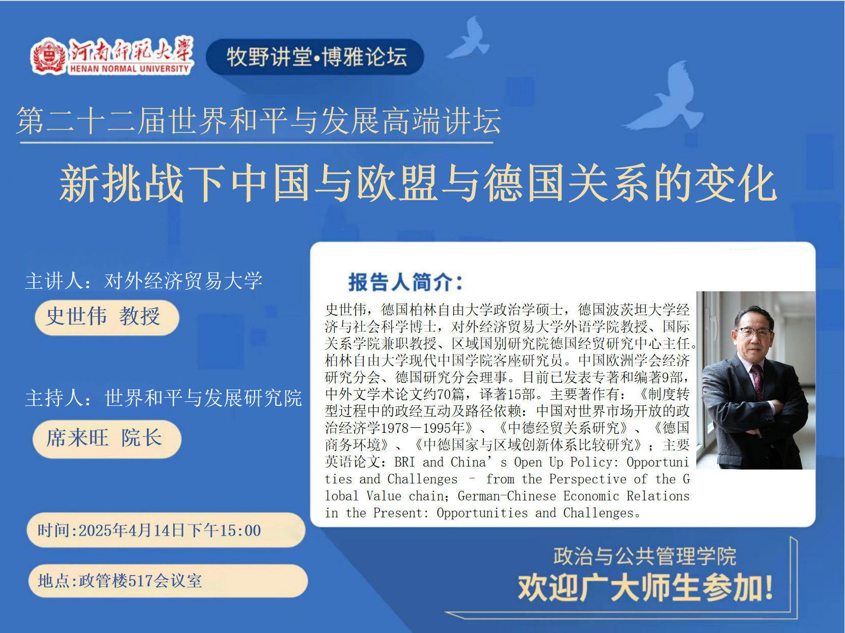 对外经济贸易大学史世伟教授将应邀做客“牧野讲堂·博雅论坛”