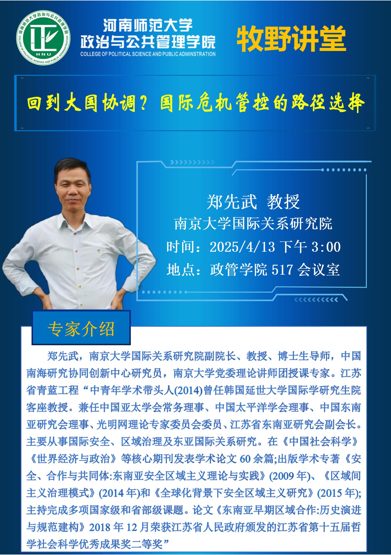 南京大学郑先武教授将应邀做客“牧野讲堂”