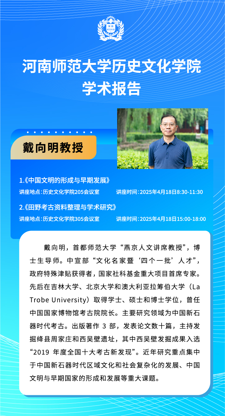 首都师范大学戴向明教授将应邀做客“史学名家讲坛”