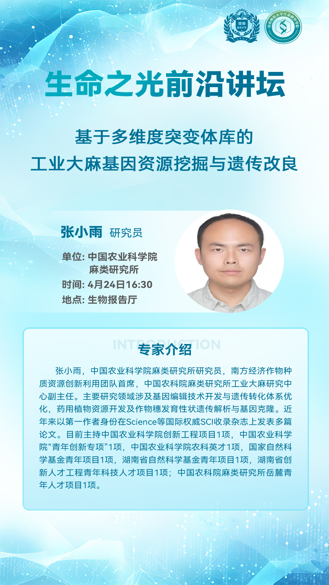 中国农业科学院麻类研究所张小雨研究员将应邀做客“生命之光前沿讲坛”