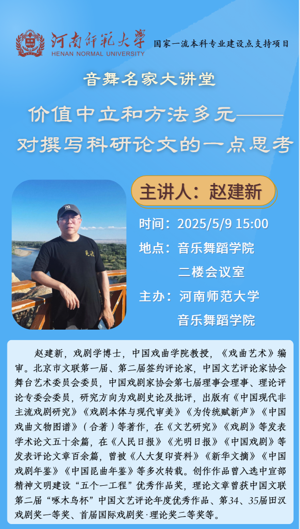 中国戏曲学院赵建新教授将做客音舞名家大讲堂