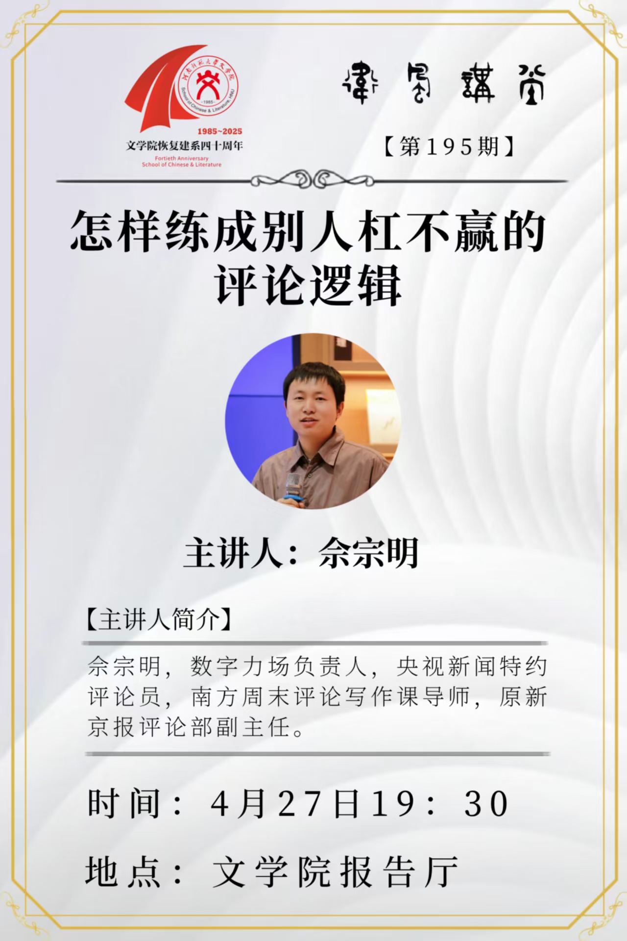 知名新闻评论员佘宗明将应邀做客“卫风讲堂”