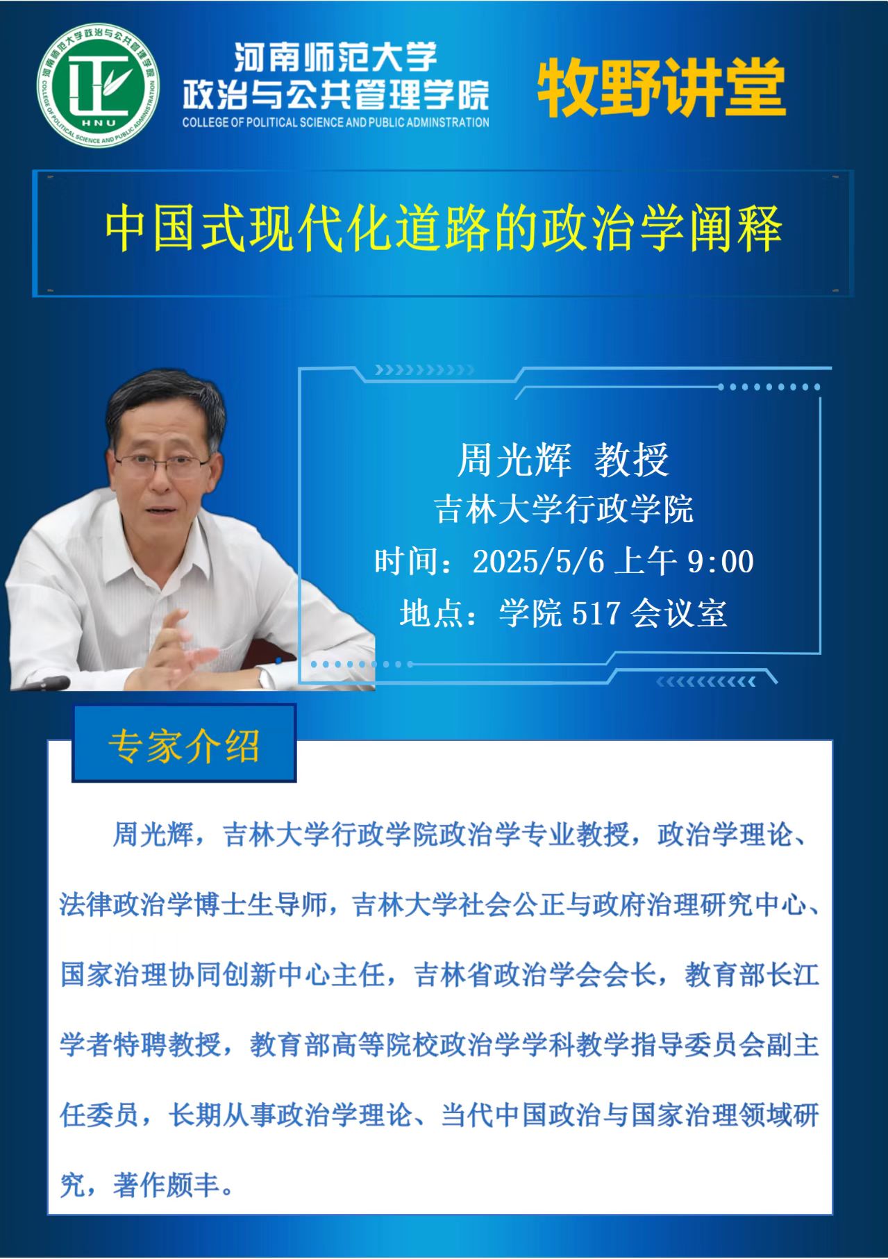 吉林大学周光辉教授应邀做客牧野讲堂