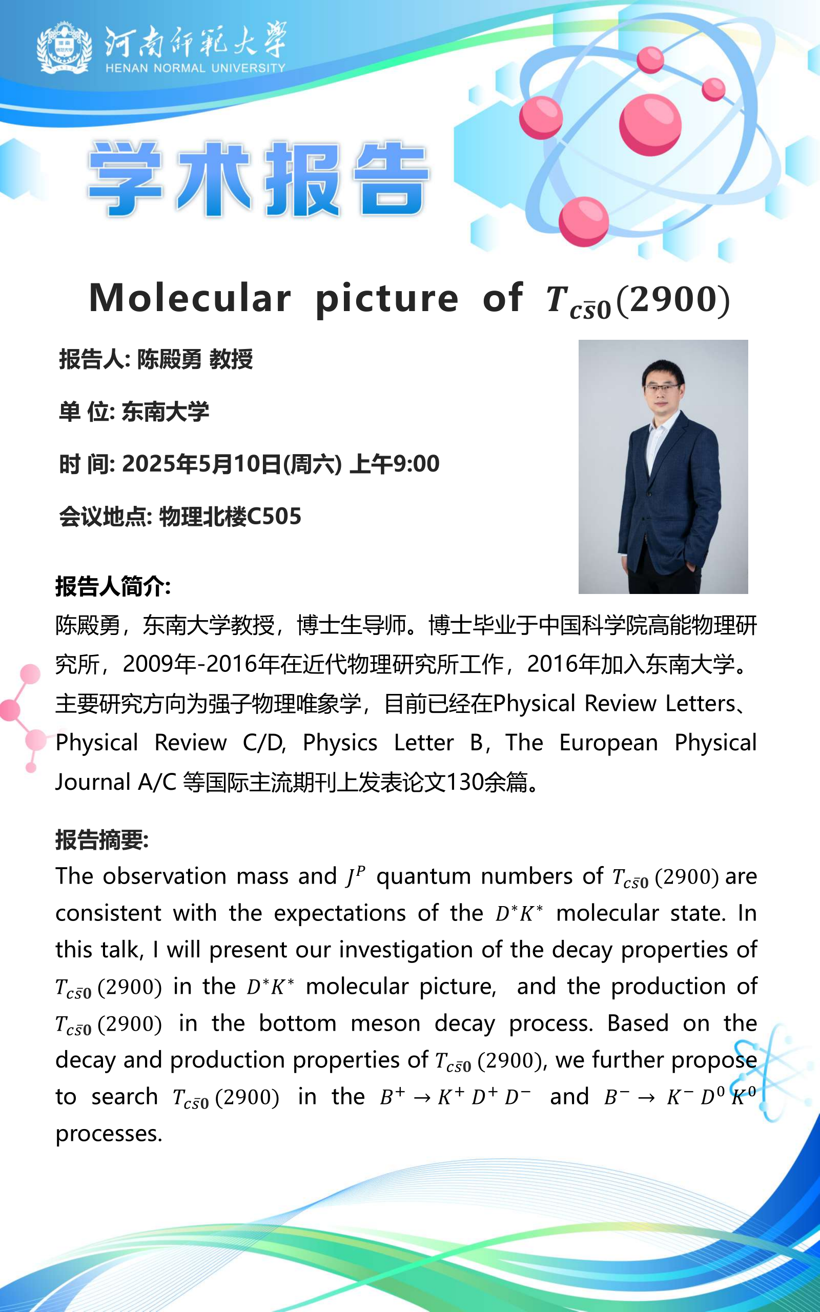 东南大学陈殿勇教授将应邀做客“八角楼”讲坛