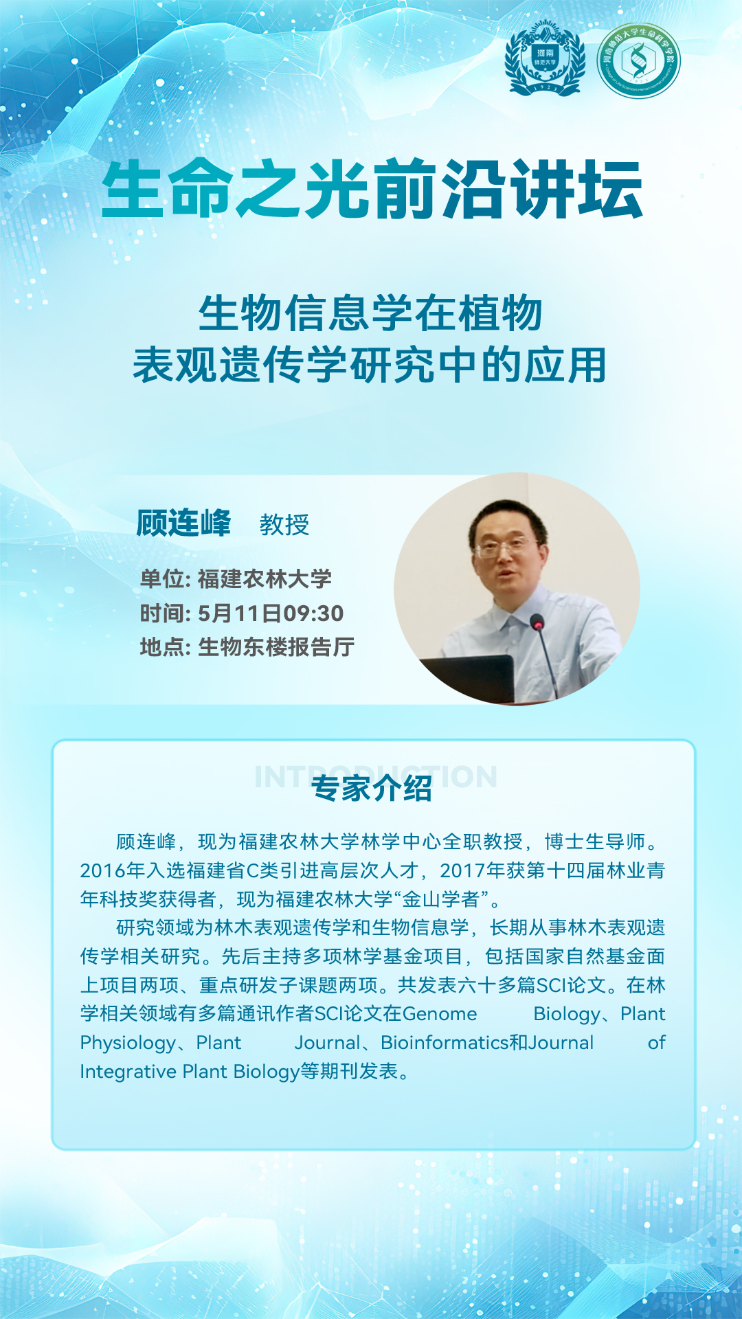 福建农林大学顾连峰教授将应邀做客“生命之光前沿讲坛”