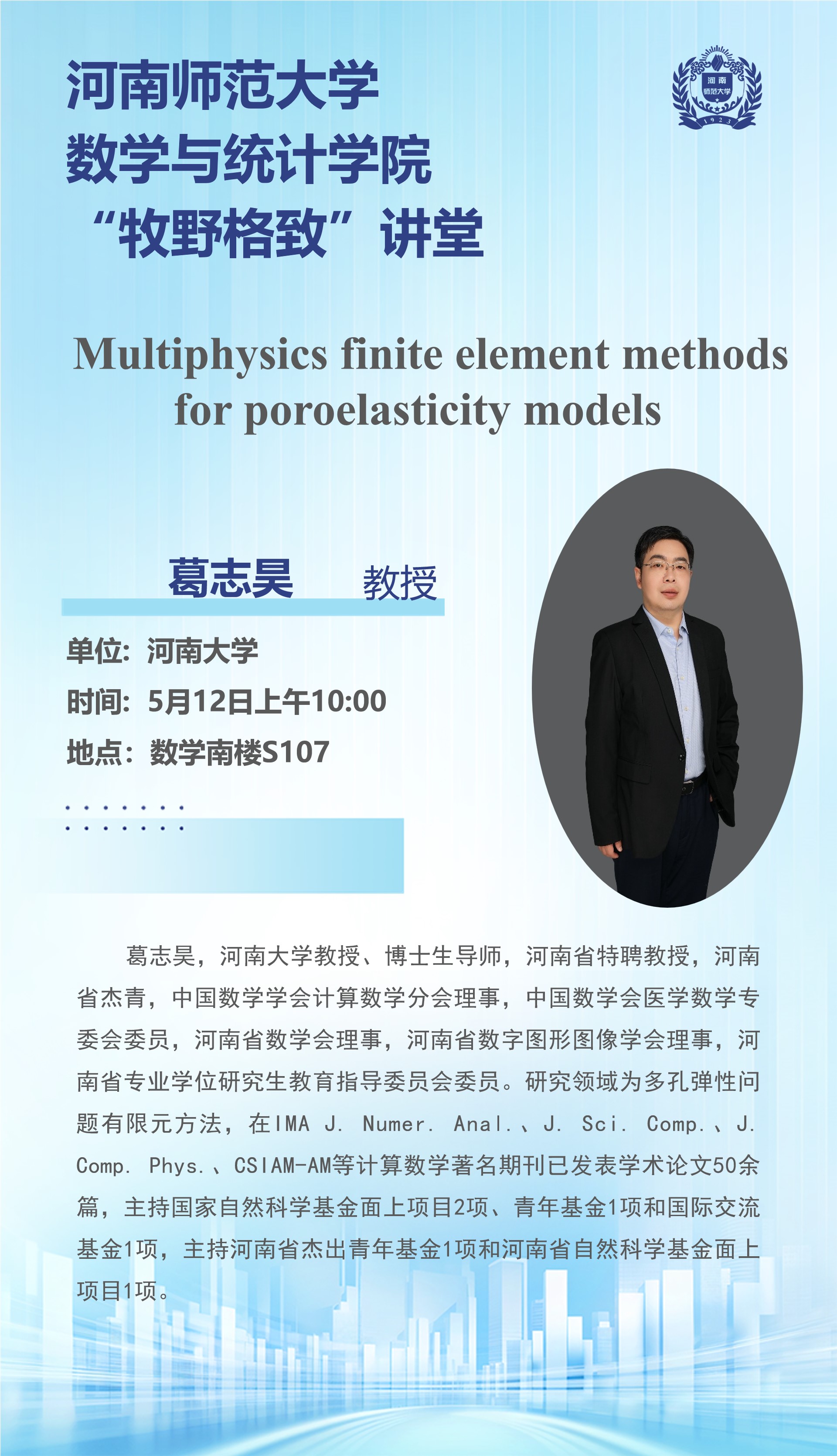 河南大学葛志昊教授将应邀做客“牧野格致”讲堂