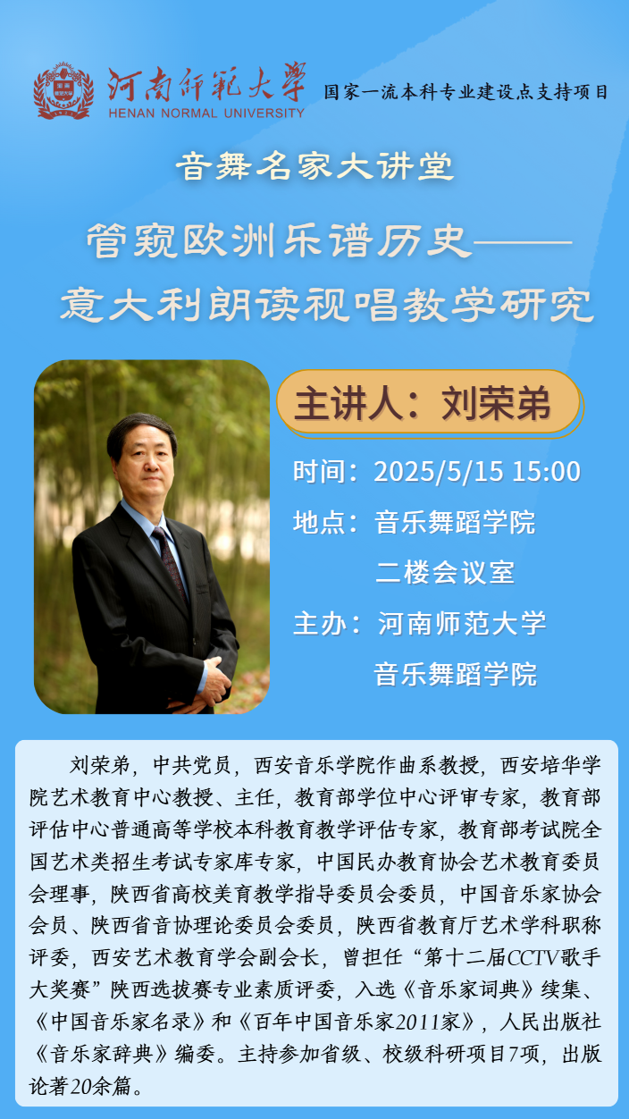 西安音乐学院刘荣弟教授将应邀做客音舞名家大讲堂