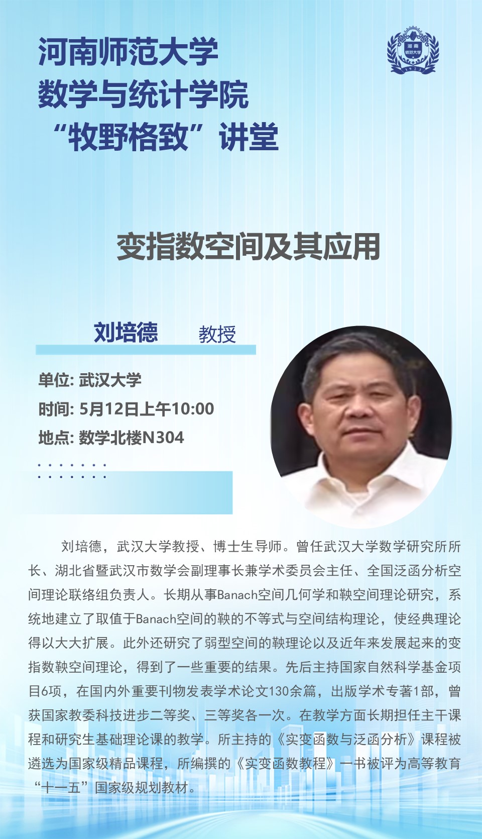 武汉大学刘培德教授将应邀做客“牧野格致”讲堂