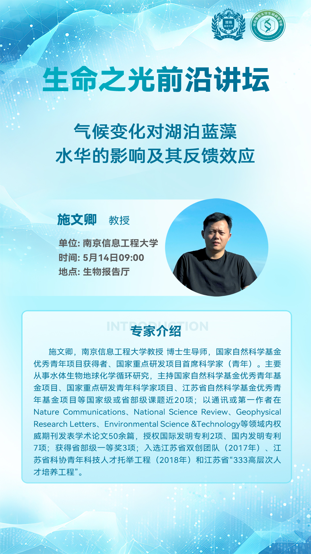 南京信息工程大学施文卿教授将应邀做客“生命之光前沿讲坛”