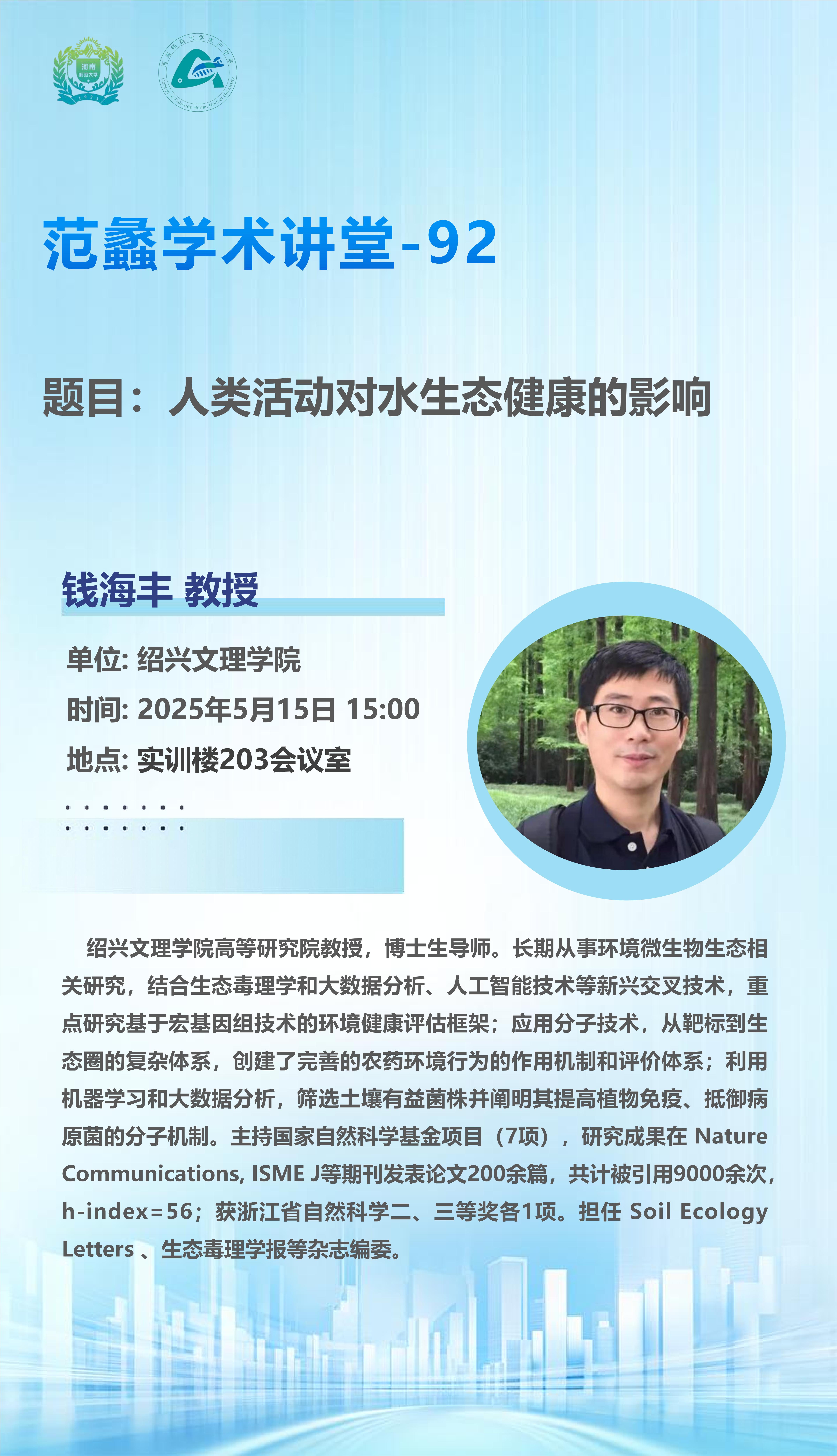 绍兴文理学院钱海丰教授将应邀做客“范蠡学术讲堂”