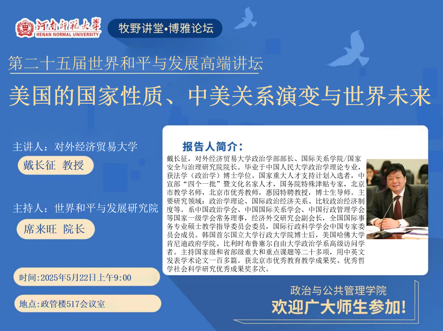 对外经济贸易大学戴长征教授将应邀做客“牧野讲堂”