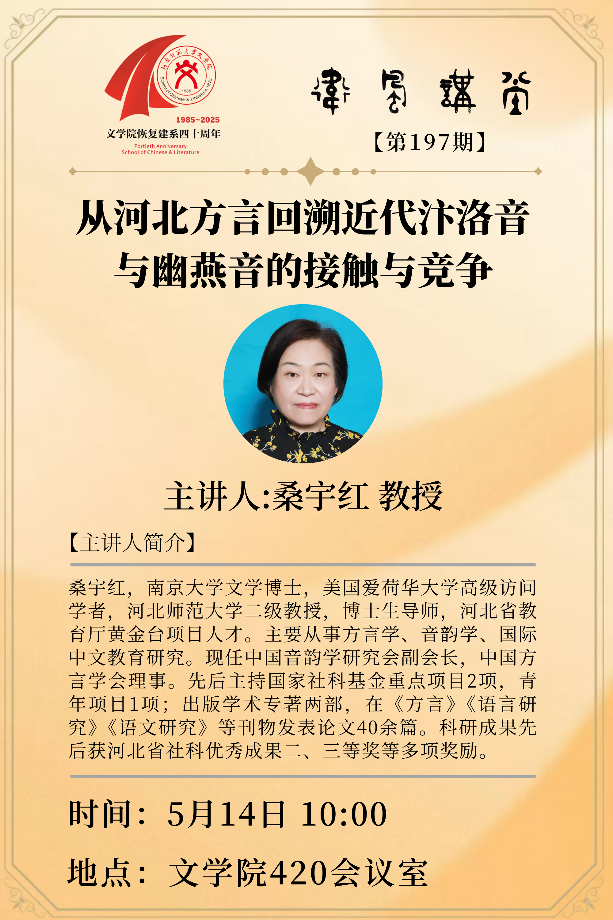 河北师范大学桑宇红教授将应邀做客“卫风讲堂
