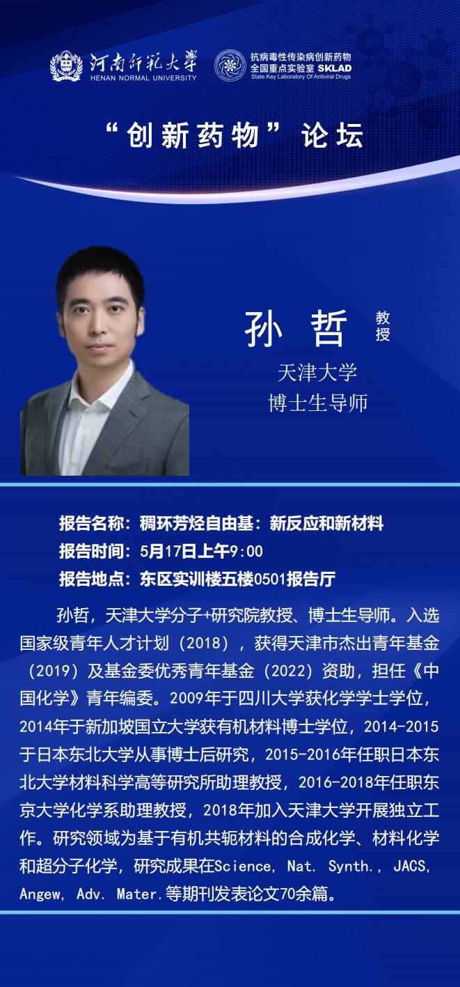 天津大学孙哲教授将应邀做客“创新药物”论坛