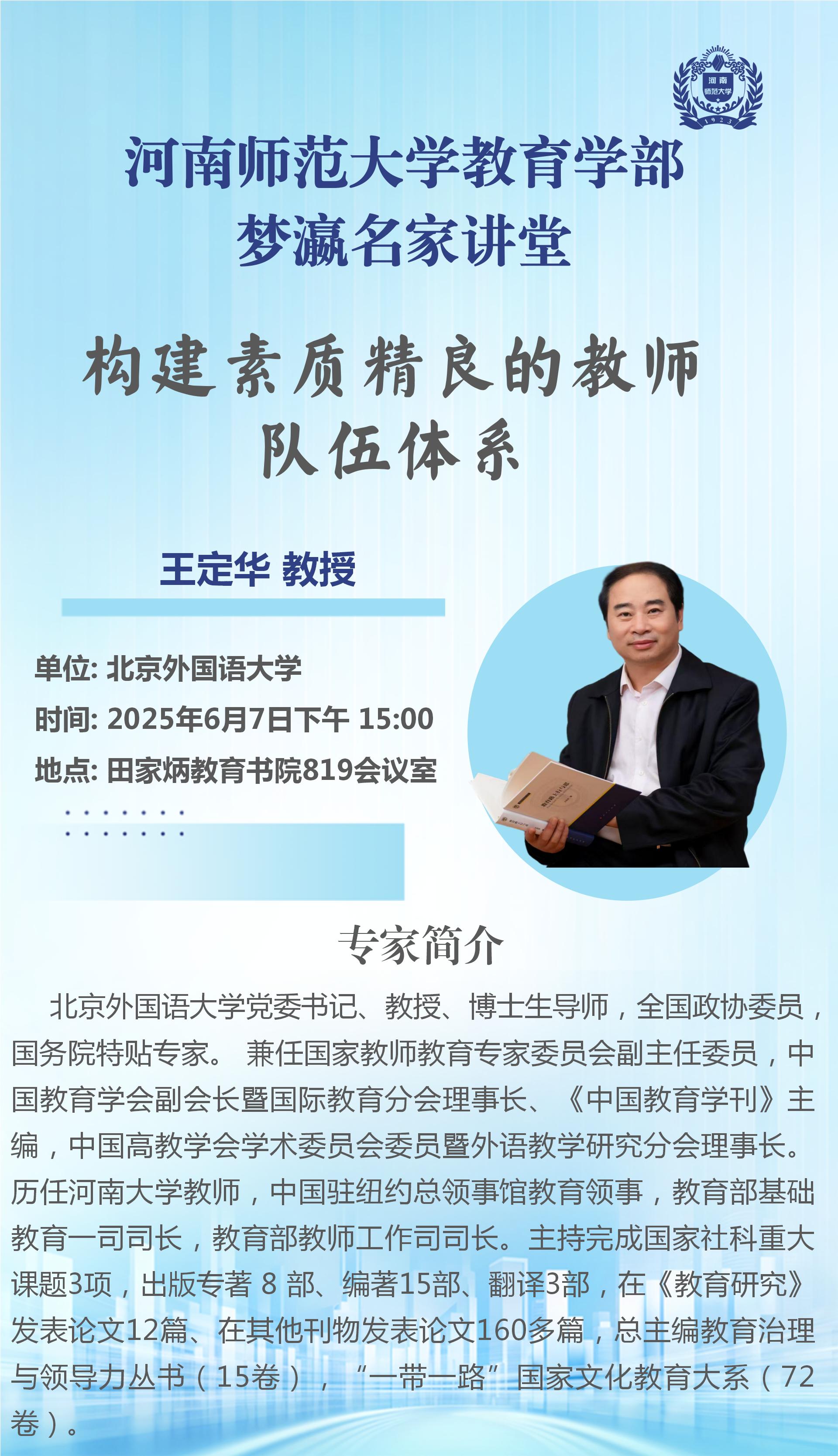 北京外国语大学王定华教授将应邀做客“梦瀛名家讲堂”