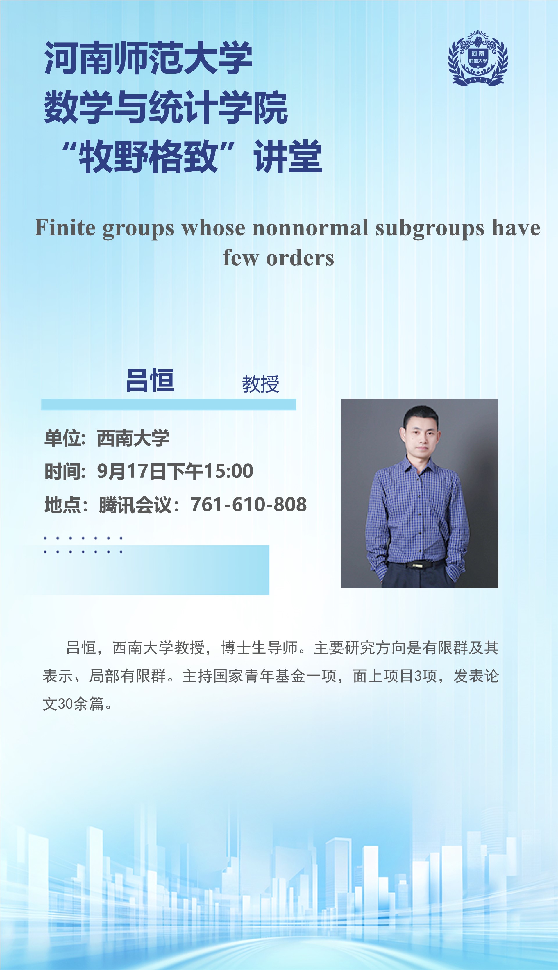 西南大学吕恒教授将应邀做客“牧野格致”讲堂