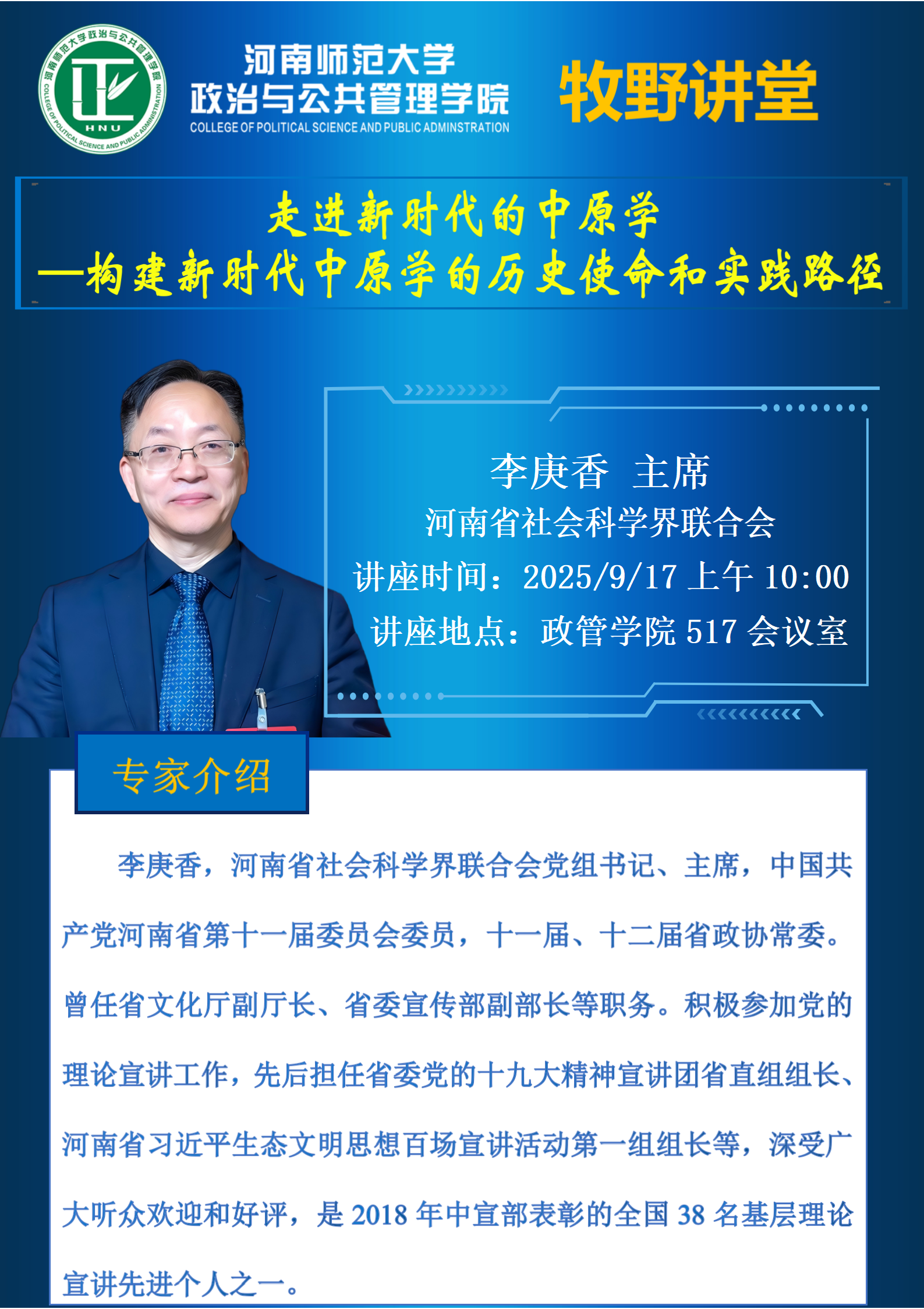 河南省社会科学界联合会李庚香主席将应邀做客“牧野讲堂”