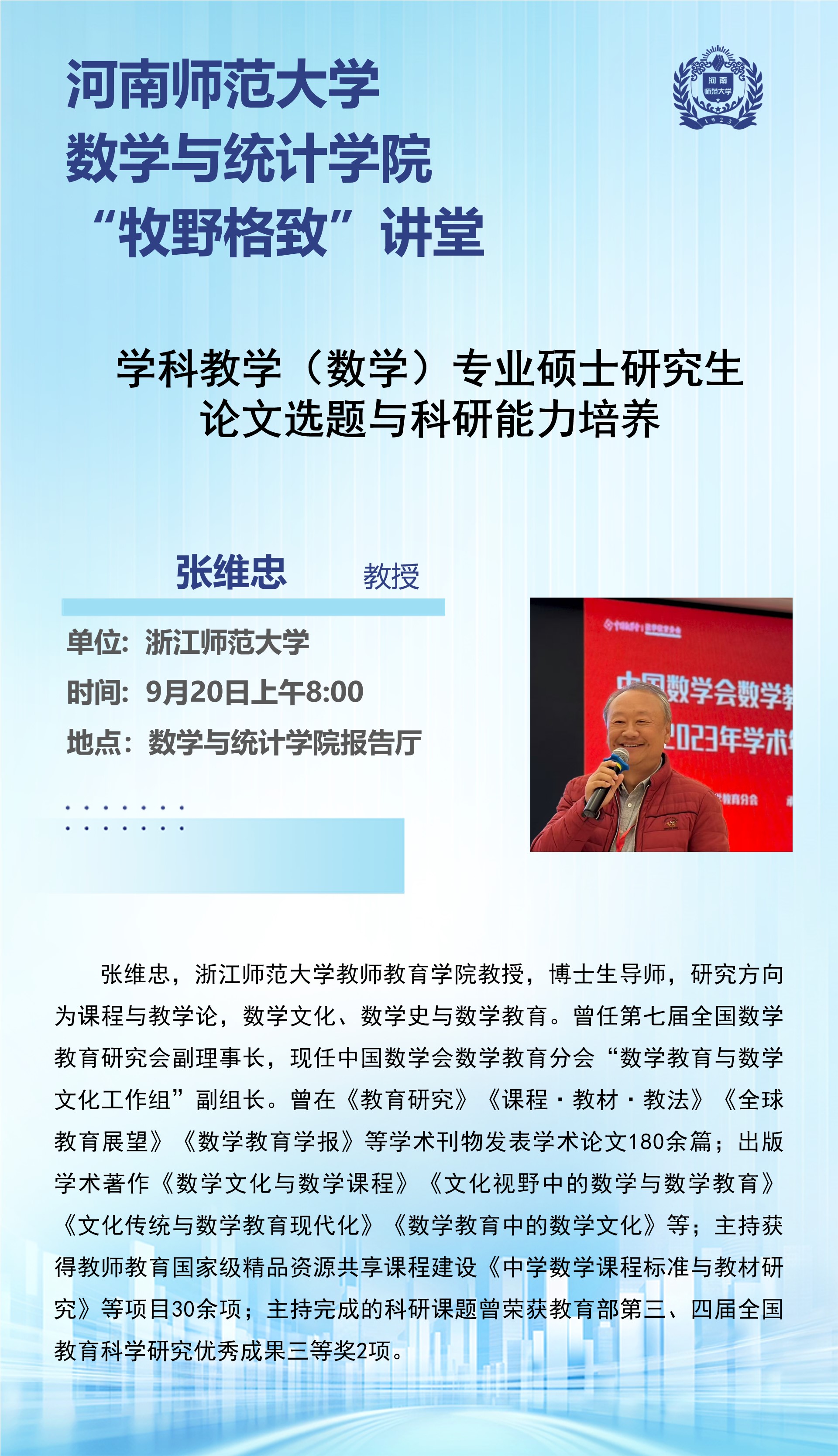 浙江师范大学张维忠教授将应邀做客“牧野格致”讲堂