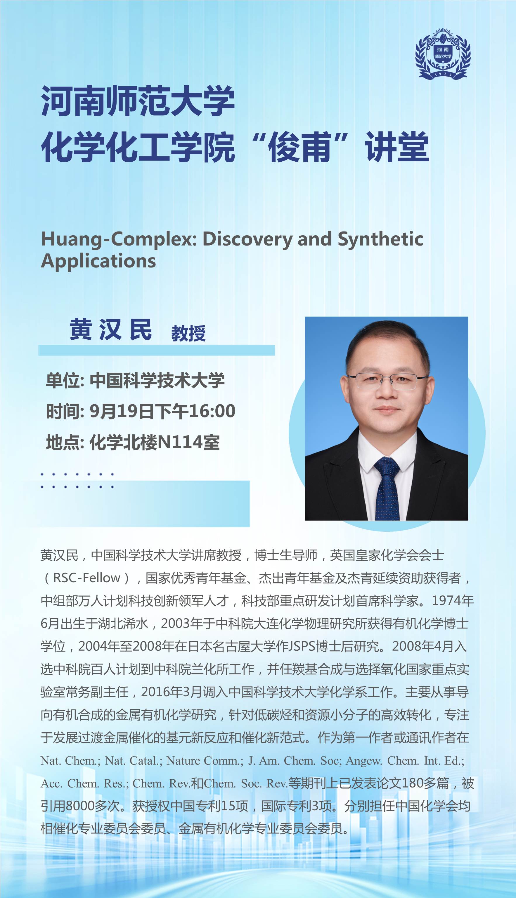 中国科学技术大学黄汉民教授将应邀做客“俊甫讲堂”