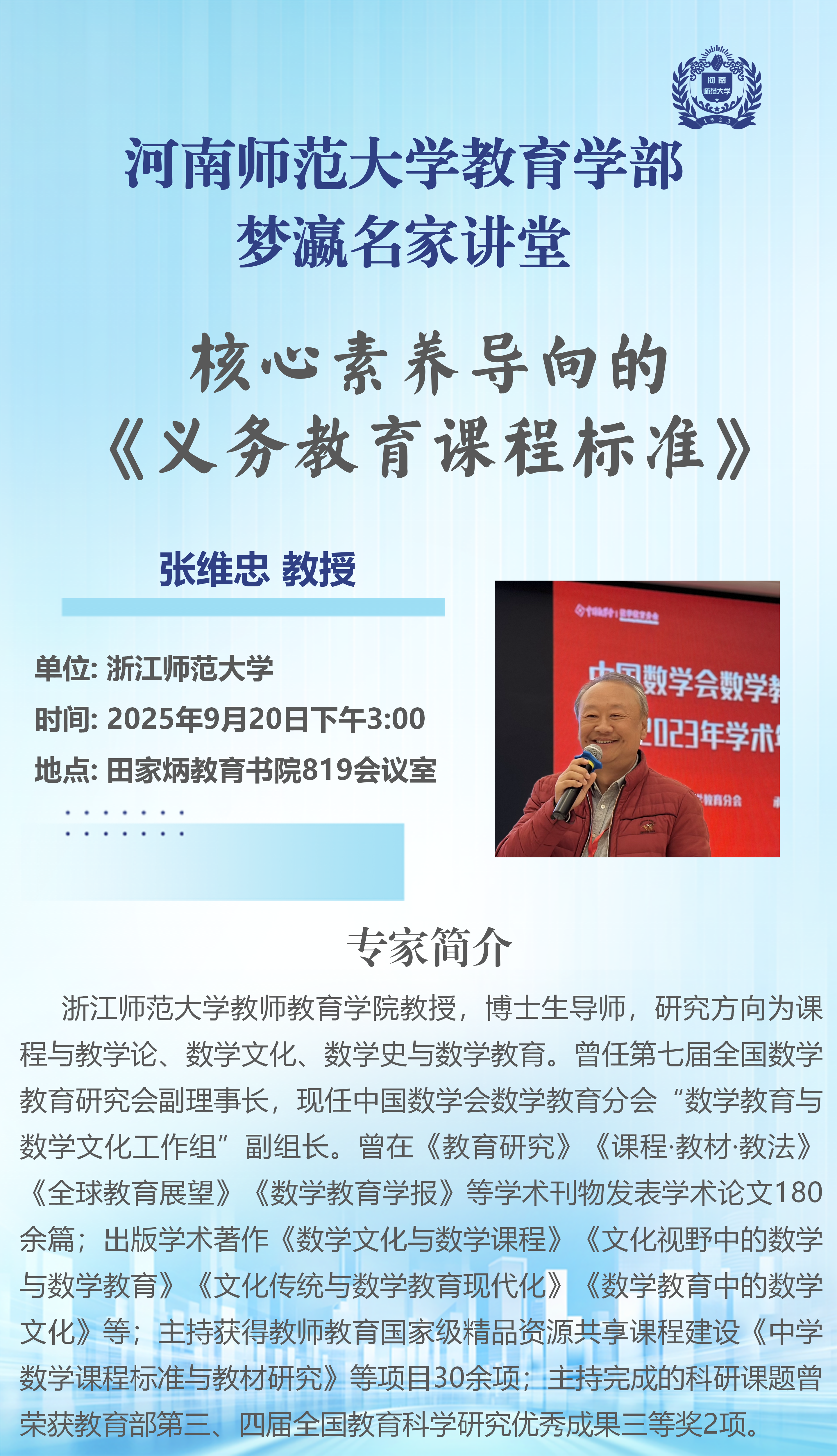 浙江师范大学张维忠教授将应邀做客“梦瀛名家讲堂”