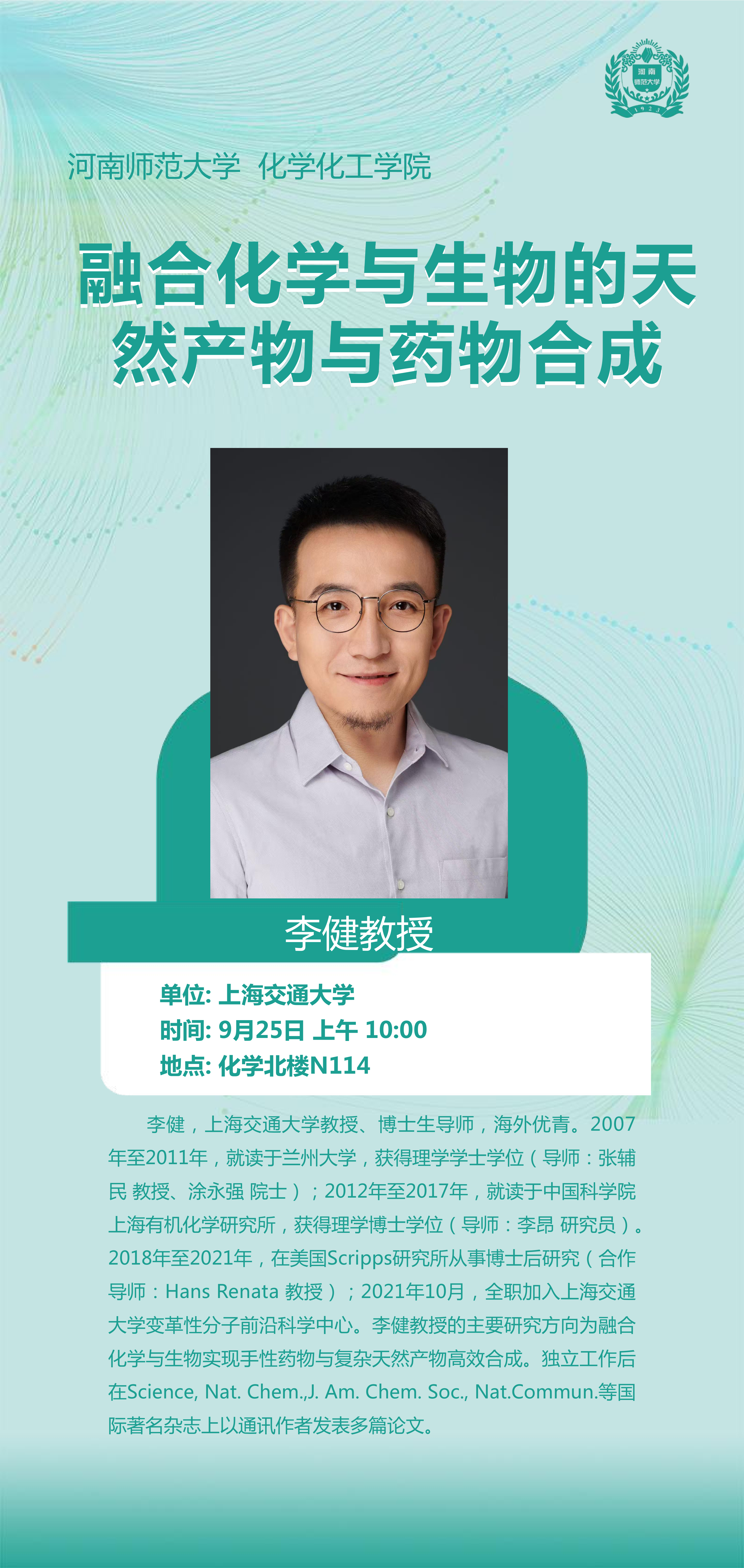 上海交通大学李健教授将应邀做客“俊甫讲堂”