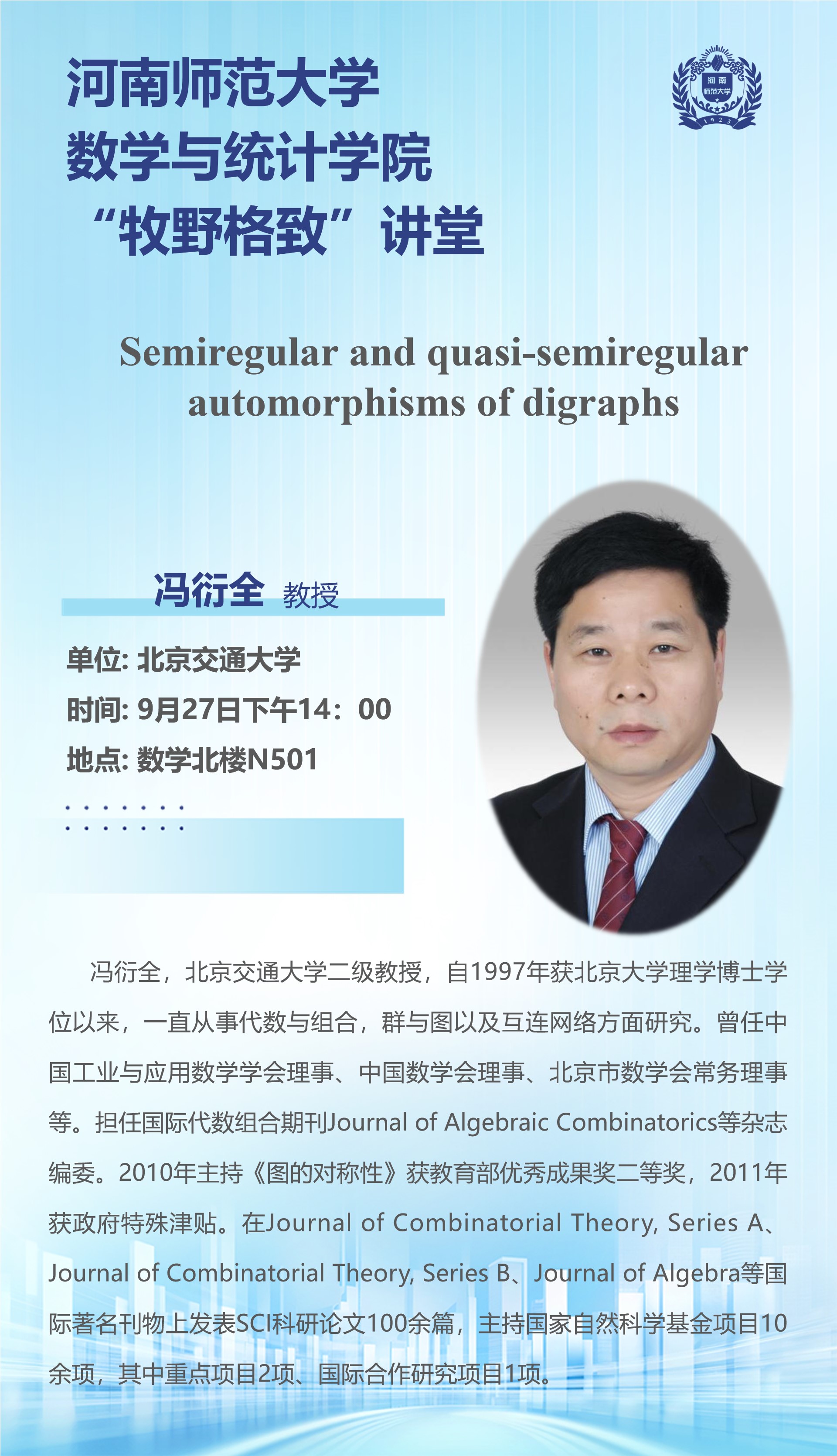 北京交通大学冯衍全教授将应邀做客“牧野格致”讲堂