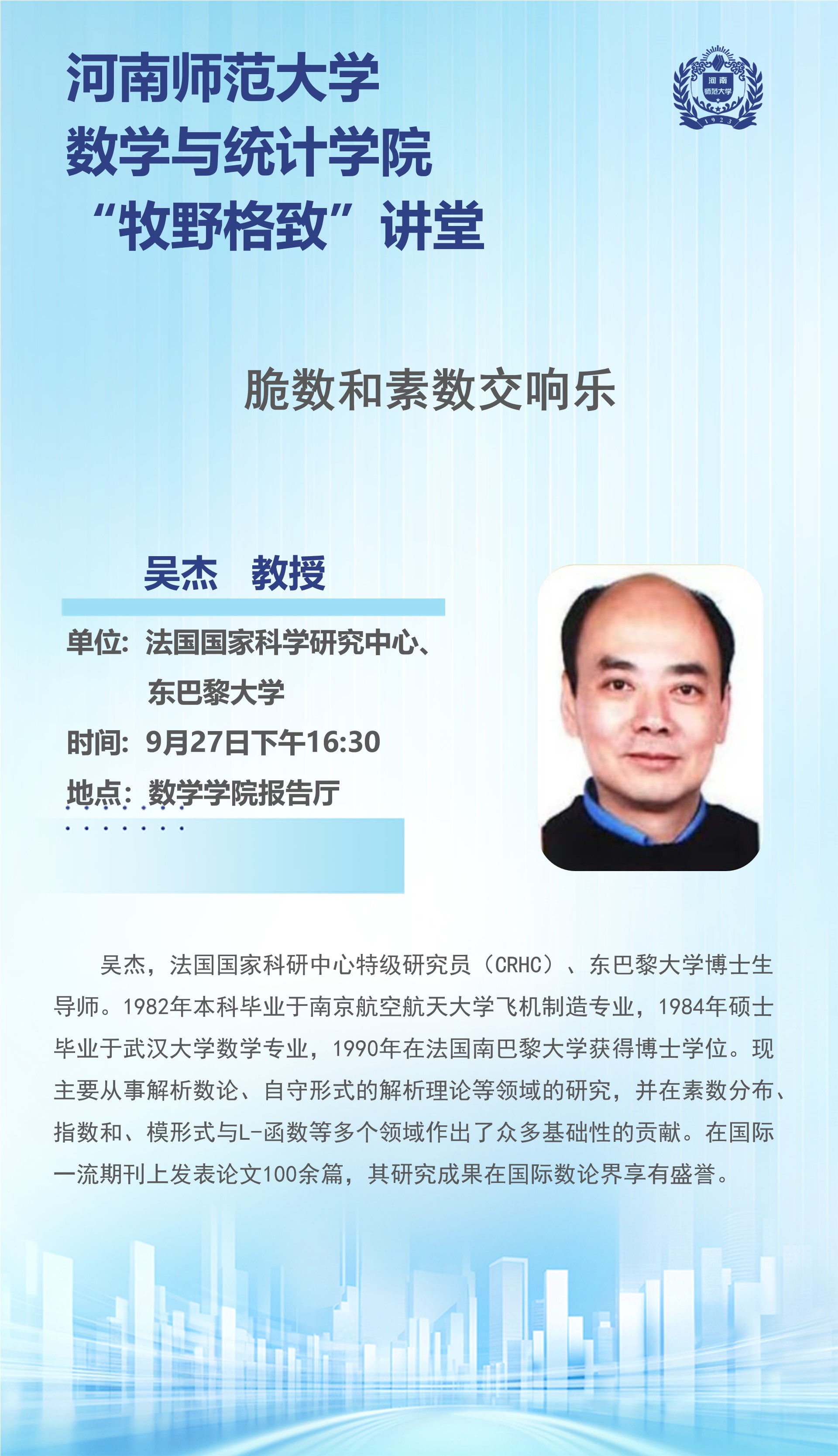 法国国家科学研究中心 东巴黎大学吴杰教授将应邀做客“牧野格致”讲堂