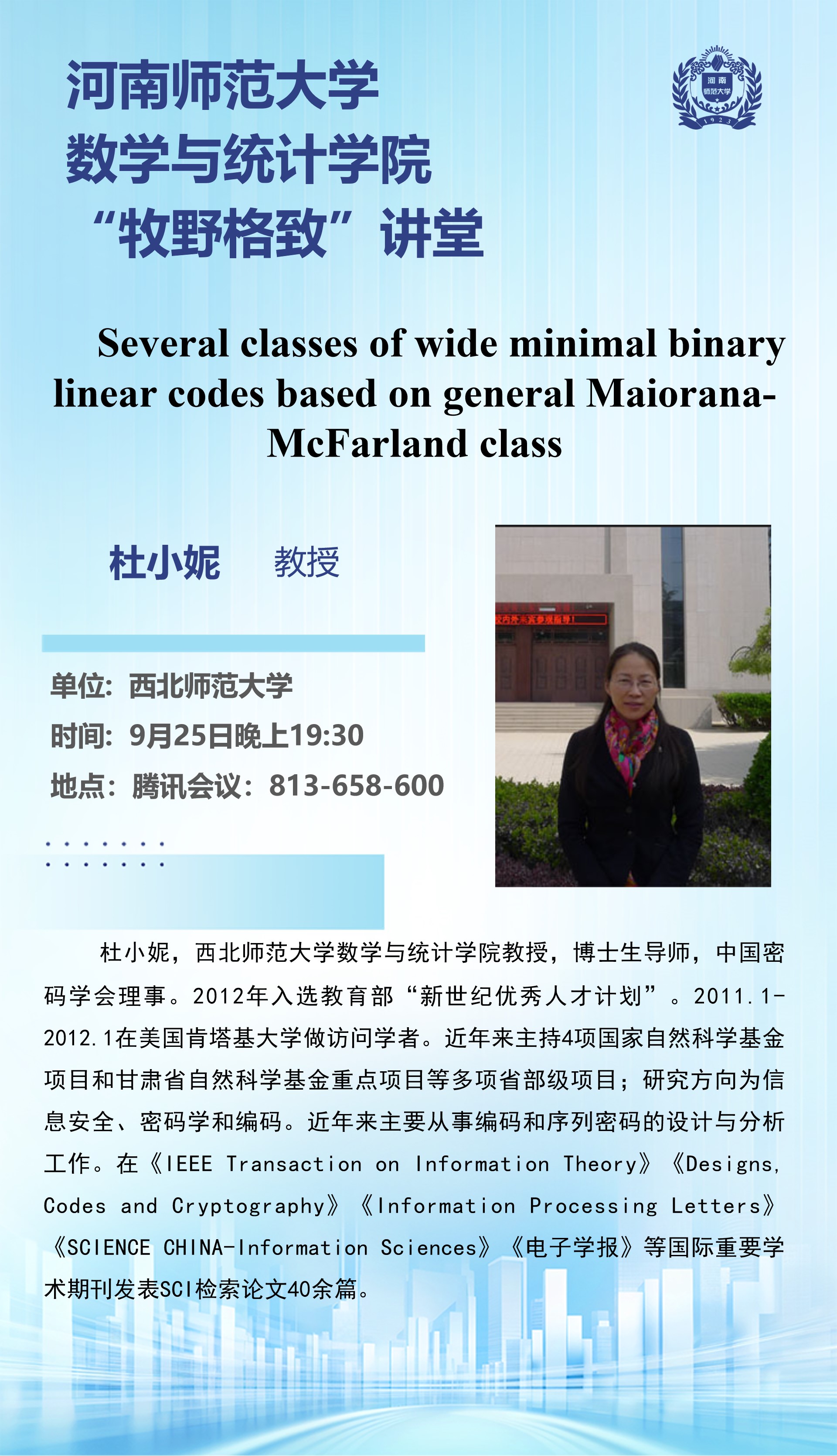 西北师范大学杜小妮教授将应邀做客“牧野格致”讲堂
