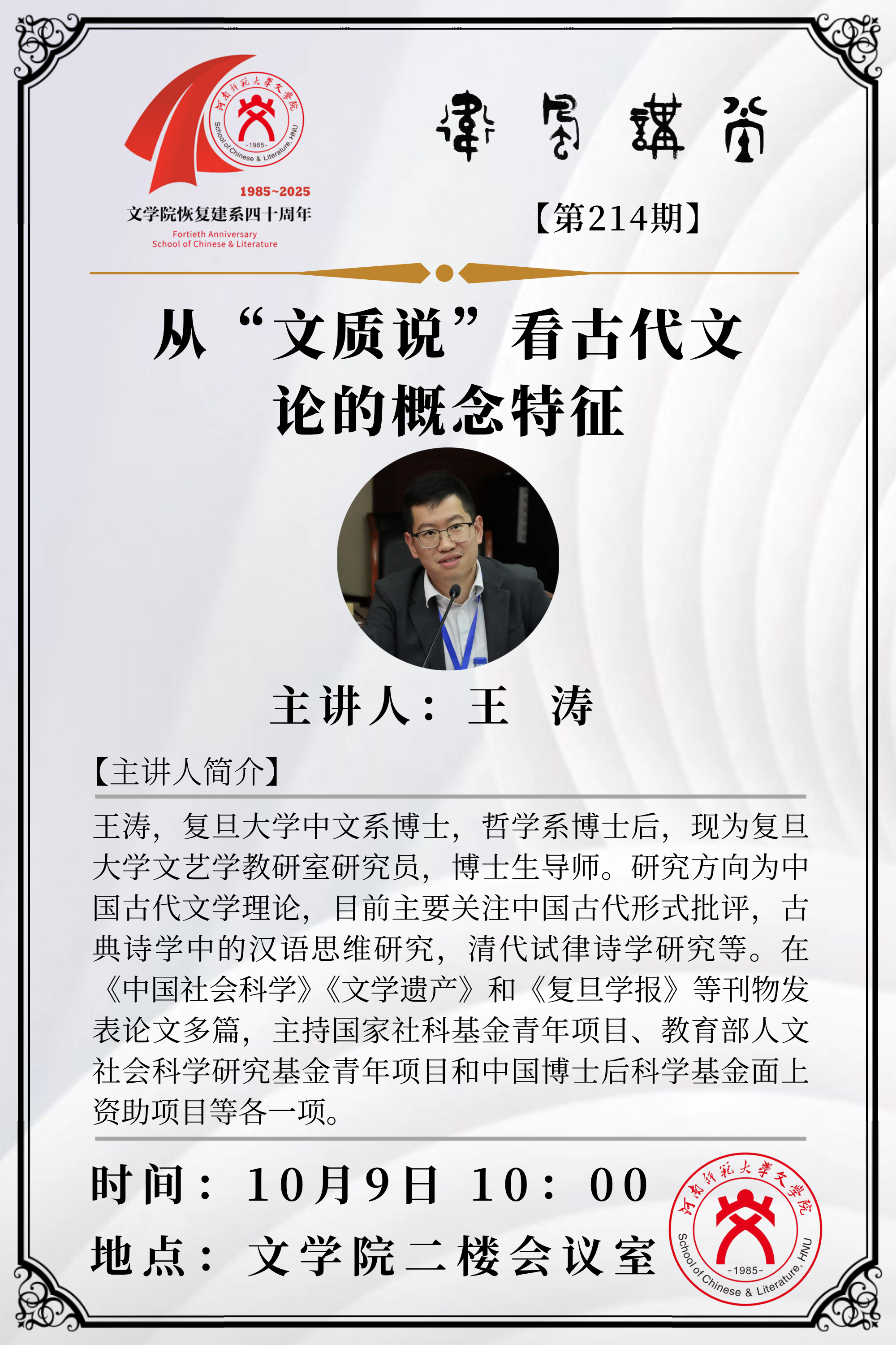 复旦大学王涛教授将应邀做客“卫风讲堂”