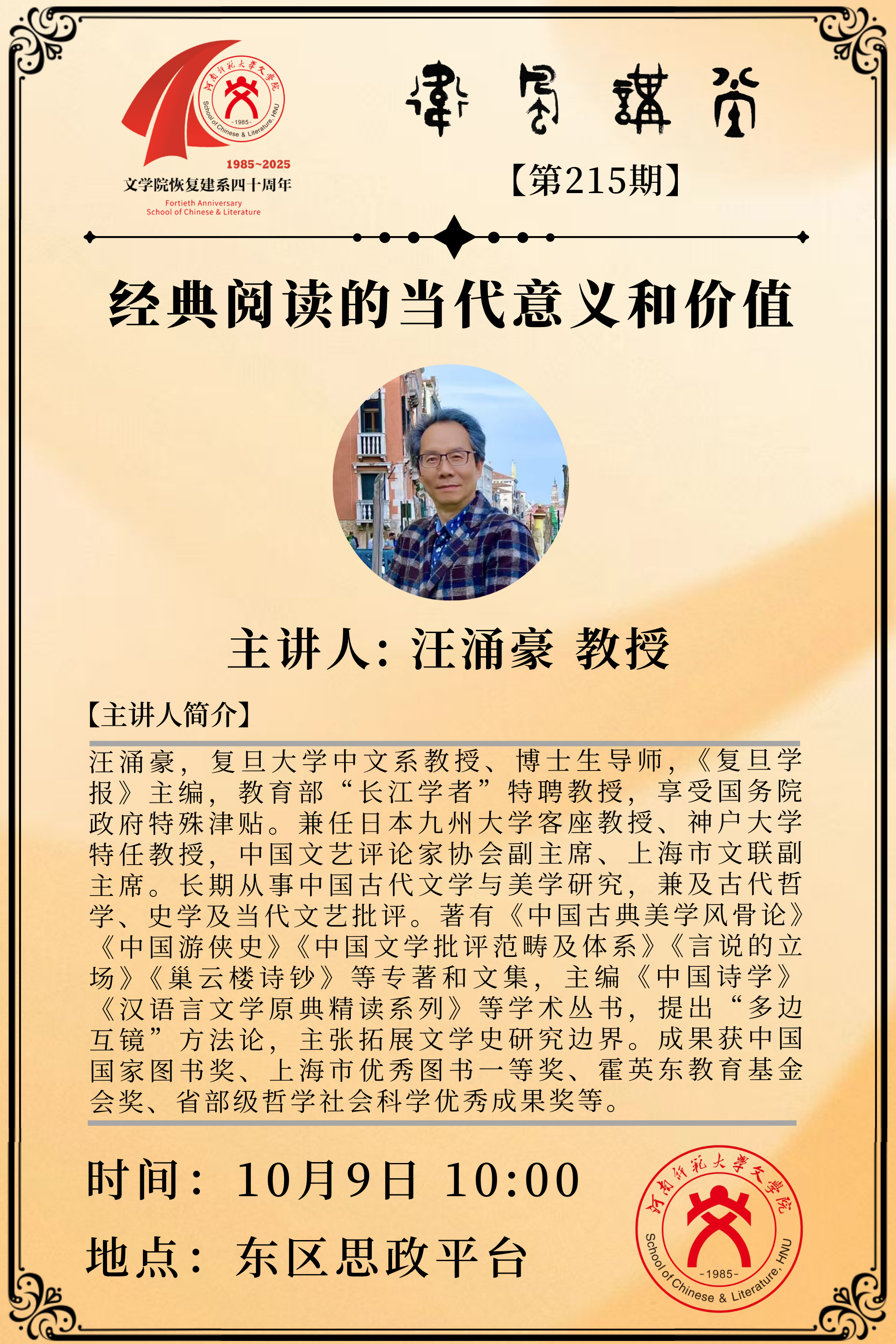 复旦大学汪涌豪教授将应邀做客“卫风讲堂”