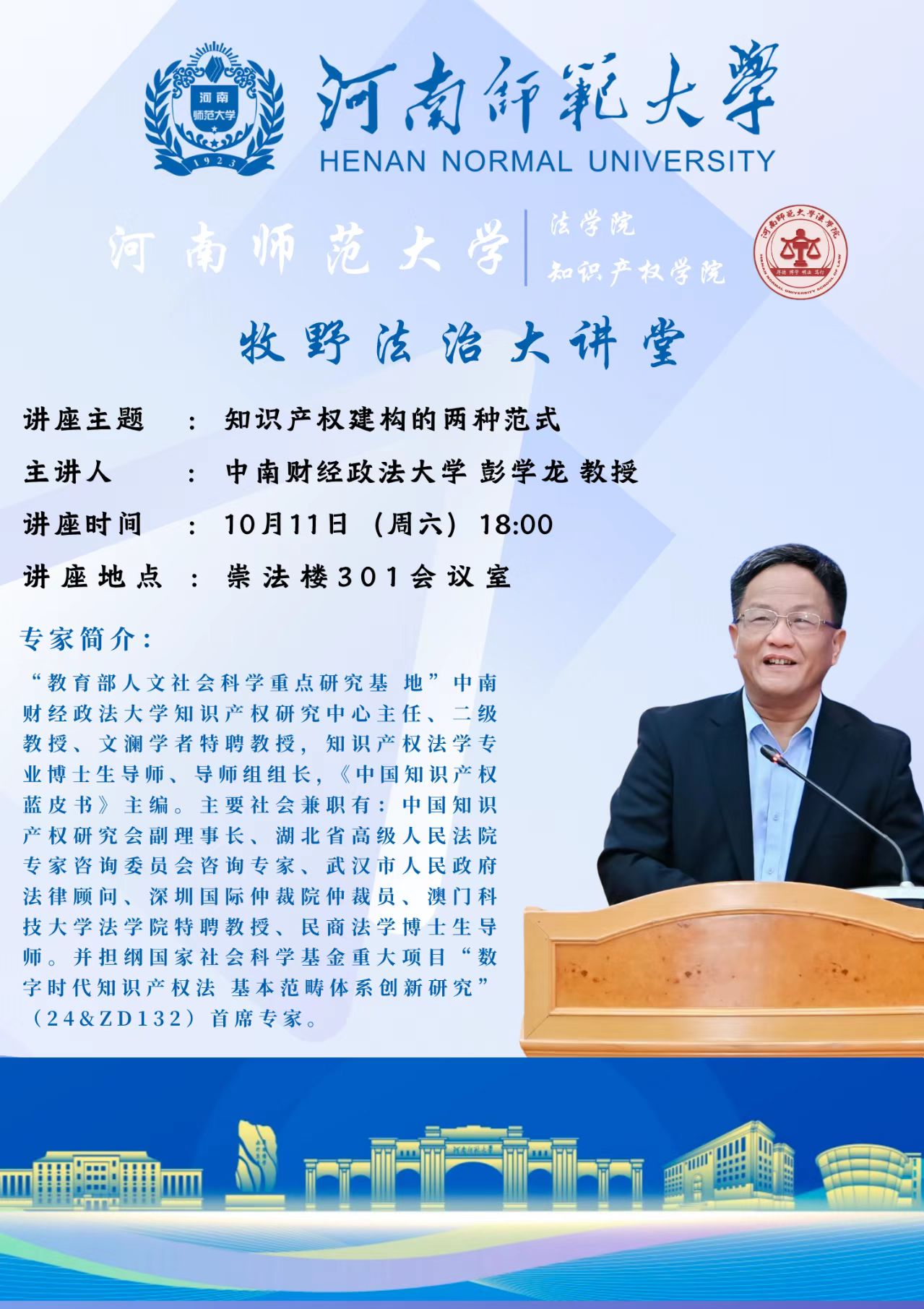 中南财经政法大学彭学龙教授将应邀做客“牧野法治大讲堂”