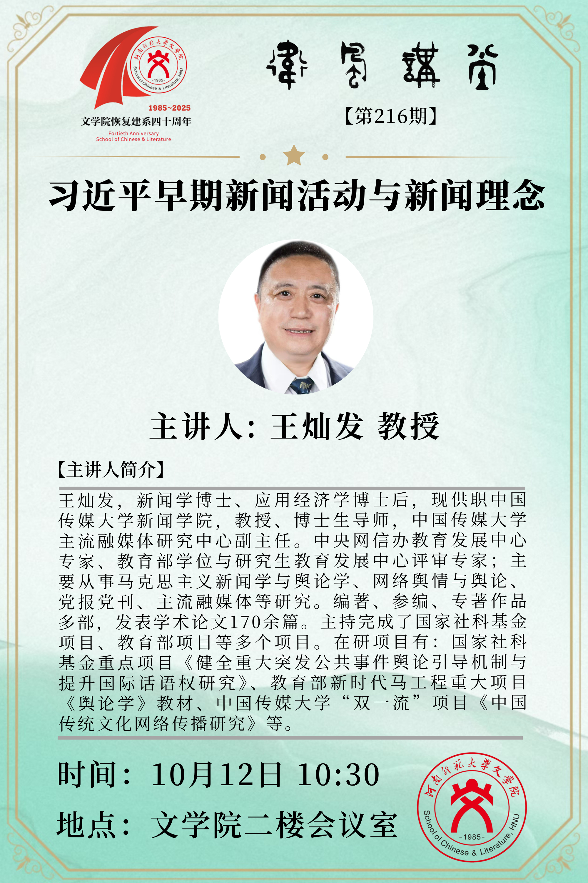 中国传媒大学王灿发教授将应邀做客“卫风讲堂”