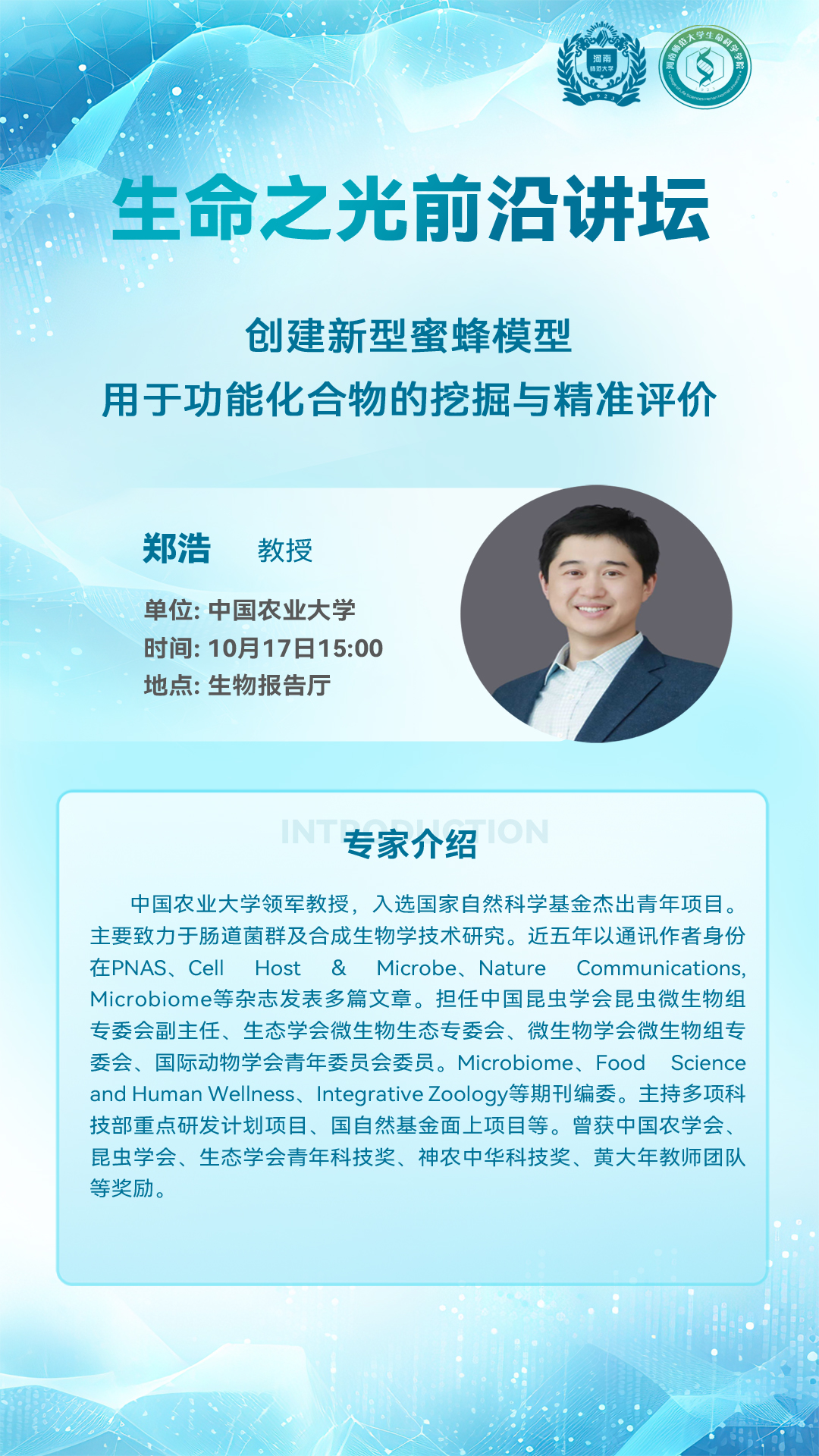 中国农业大学郑浩教授将应邀做客“生命之光”前沿讲坛