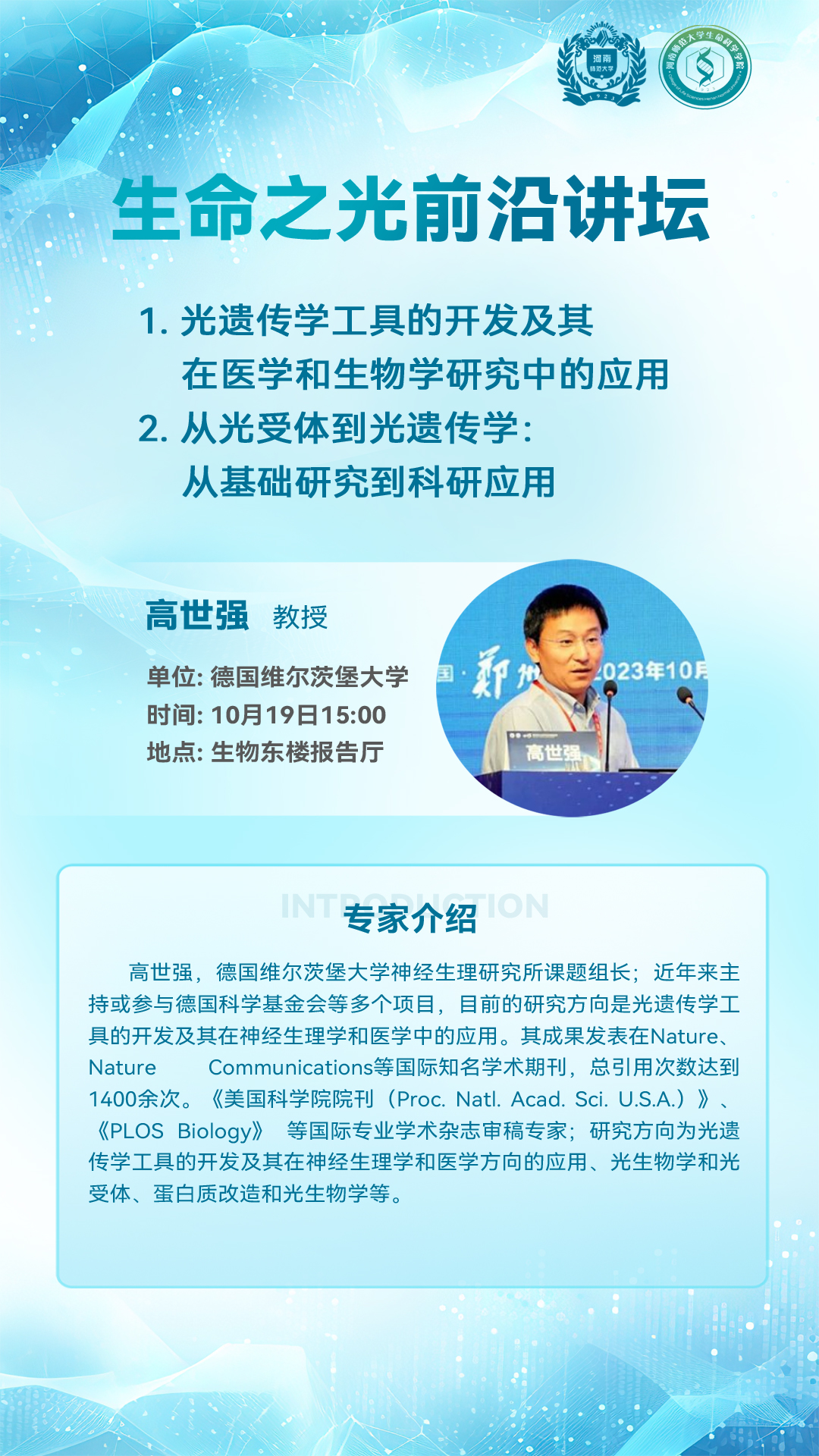 德国维尔茨堡大学高世强教授将应邀做客“生命之光”前沿讲坛