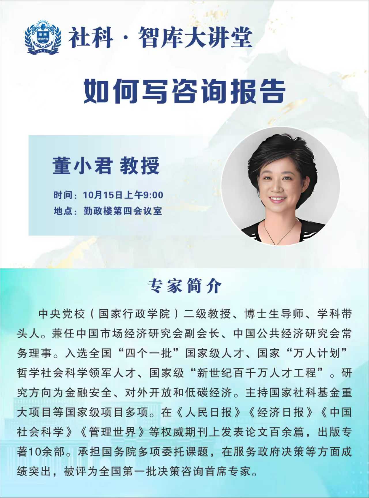 中央党校董小君教授将应邀做客“社科·智库”大讲堂