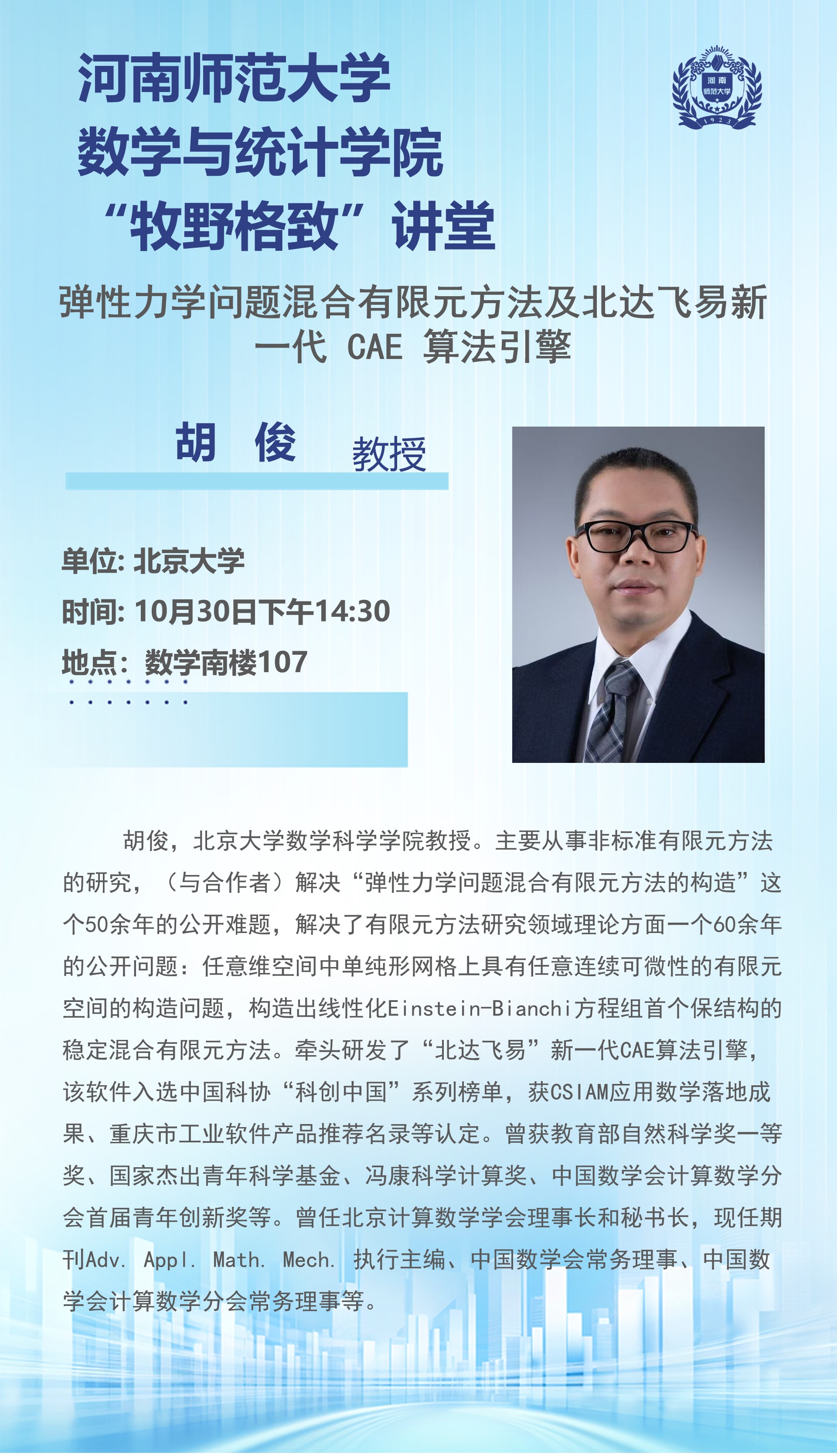北京大学胡俊教授将应邀做客“牧野格致”讲堂