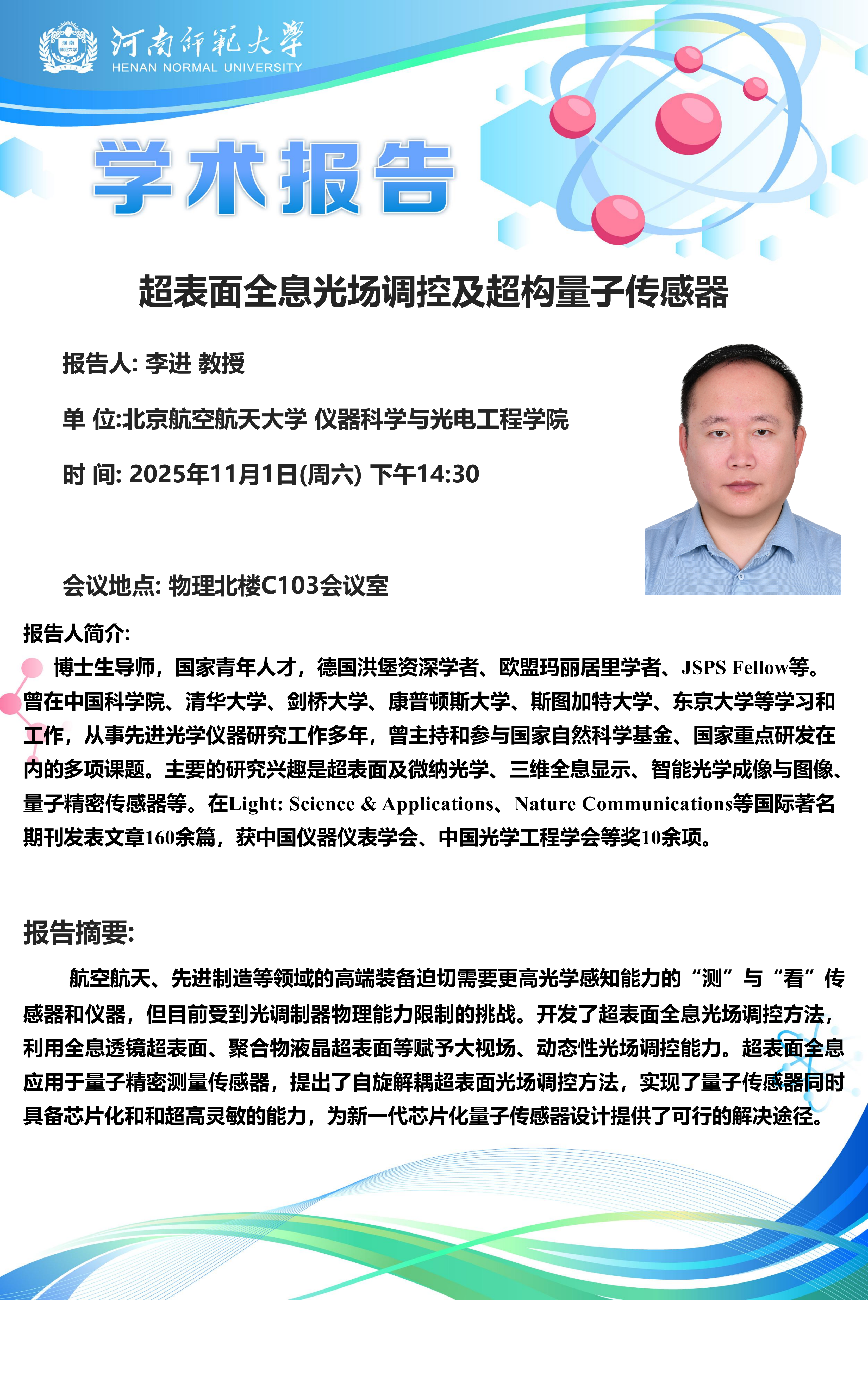 北京航空航天大学李进教授将应邀做客“八角楼”讲坛