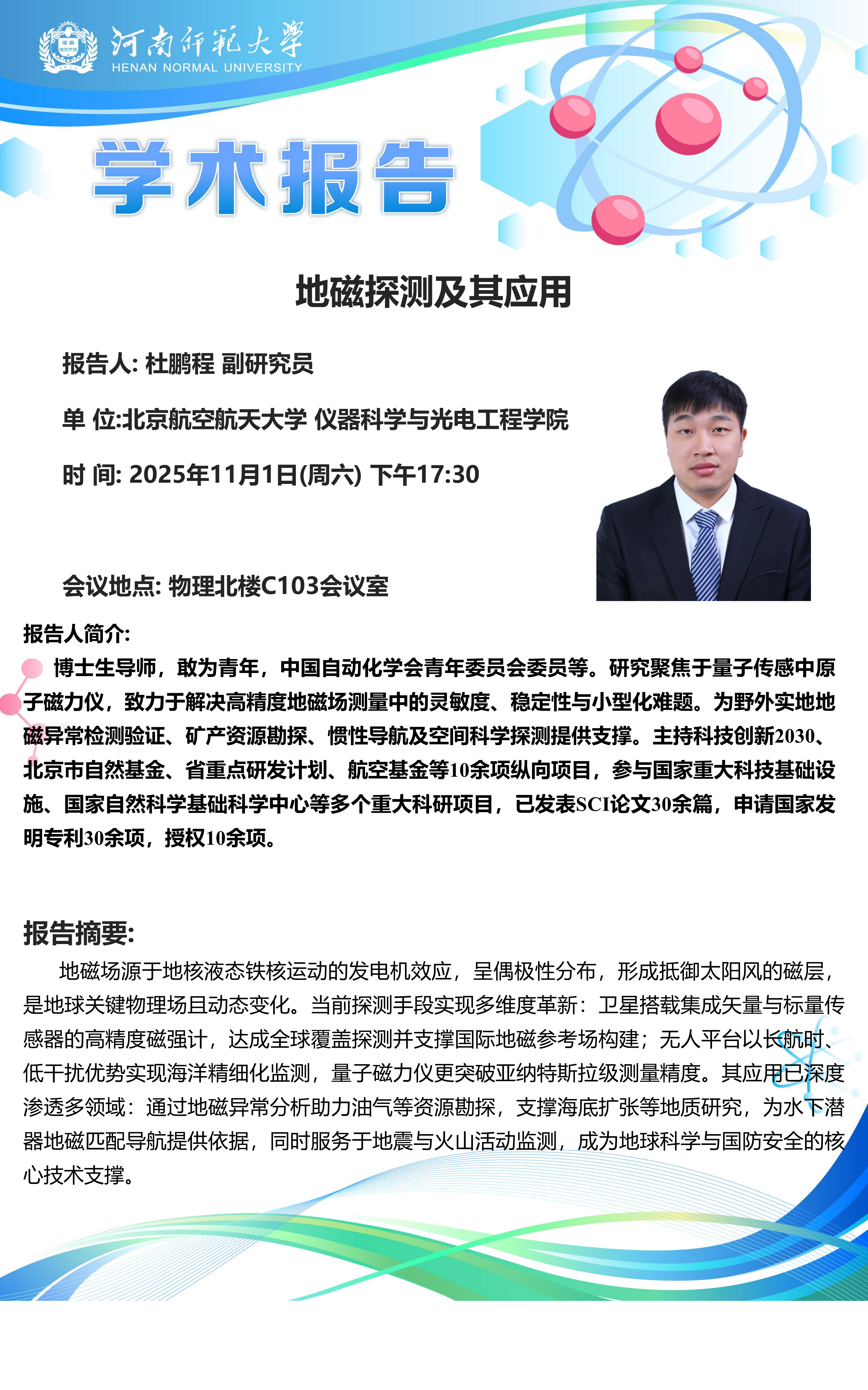 北京航空航天大学杜鹏程副研究员将应邀做客“八角楼”讲坛