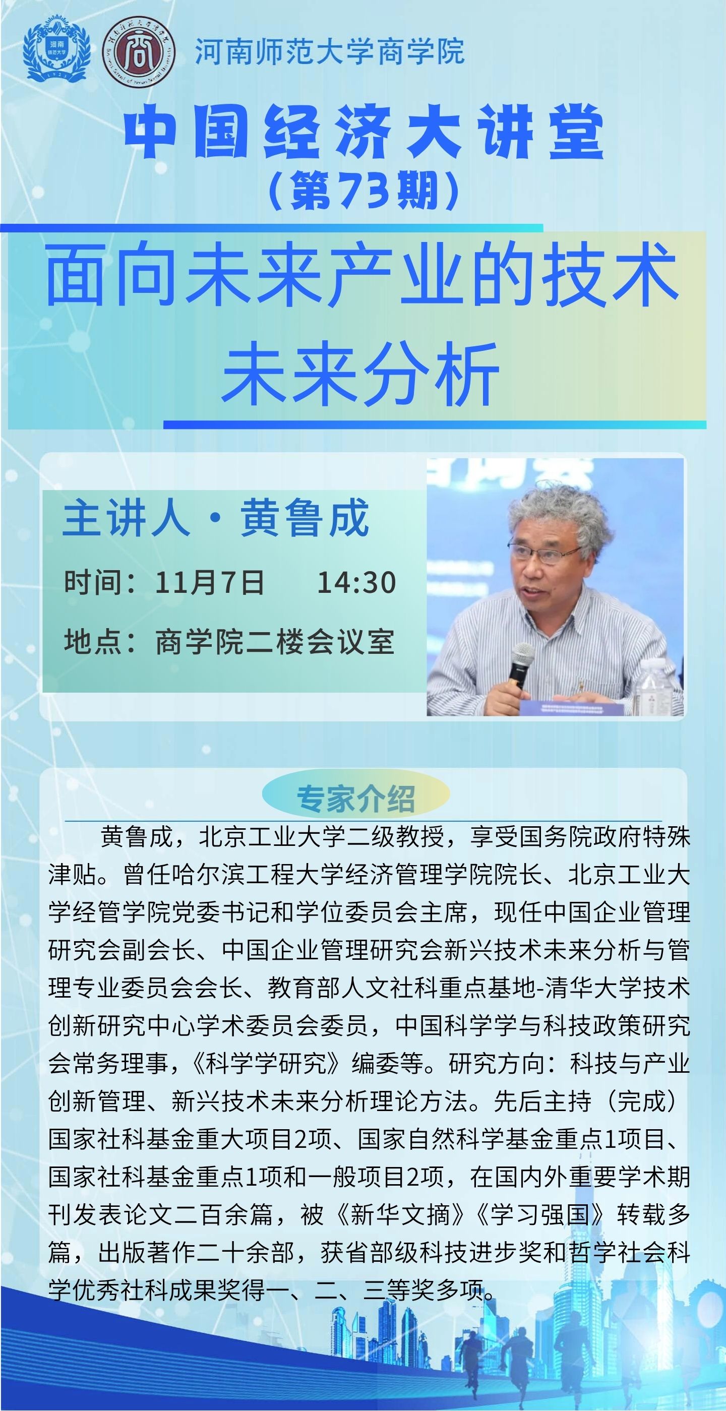 北京工业大学黄鲁成教授将应邀做客“中国经济大讲堂”