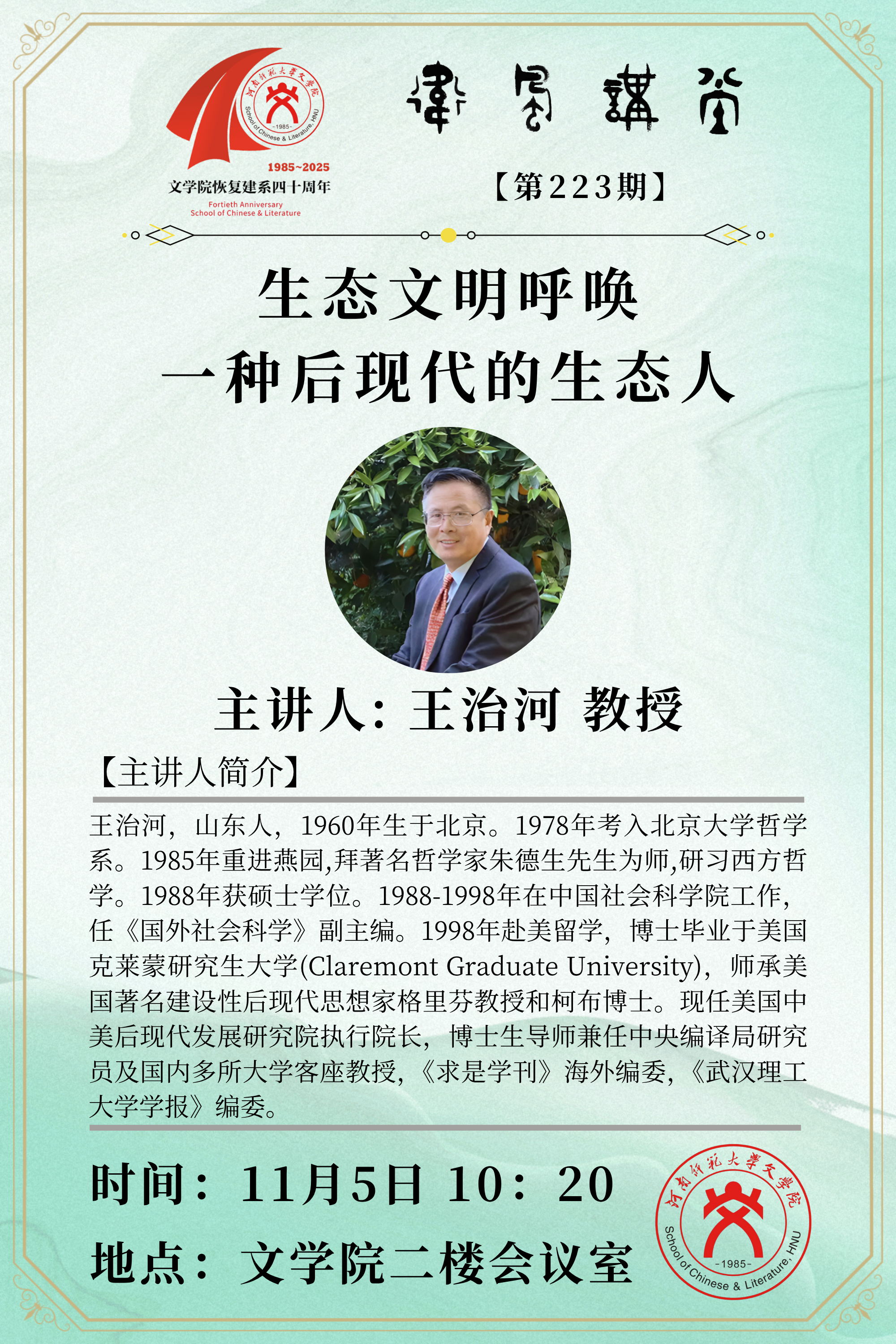 美国中美后现代发展研究院执行院长王治河教授将应邀做客“卫风讲堂”