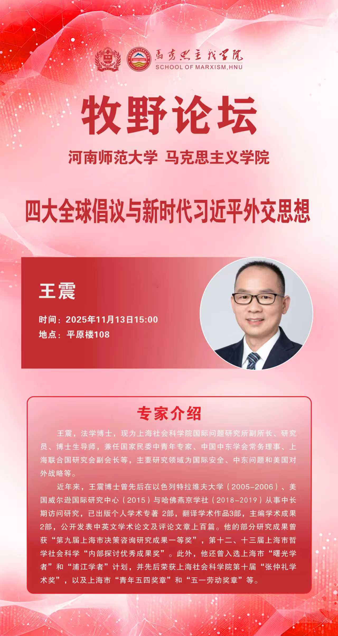 上海社会科学院王震研究员将应邀做客“牧野论坛”