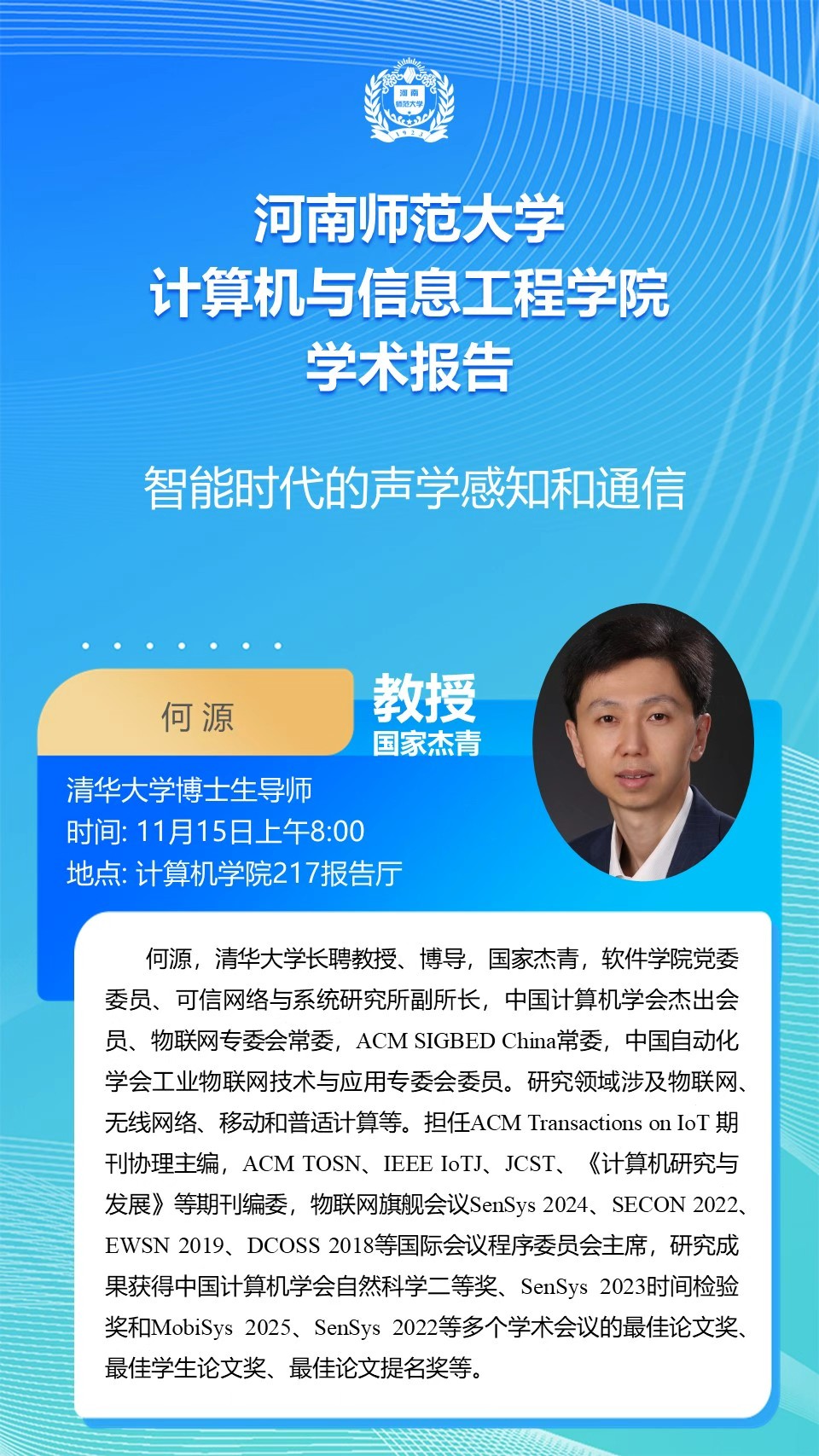 清华大学何源教授将应邀做客“智能科学”讲坛