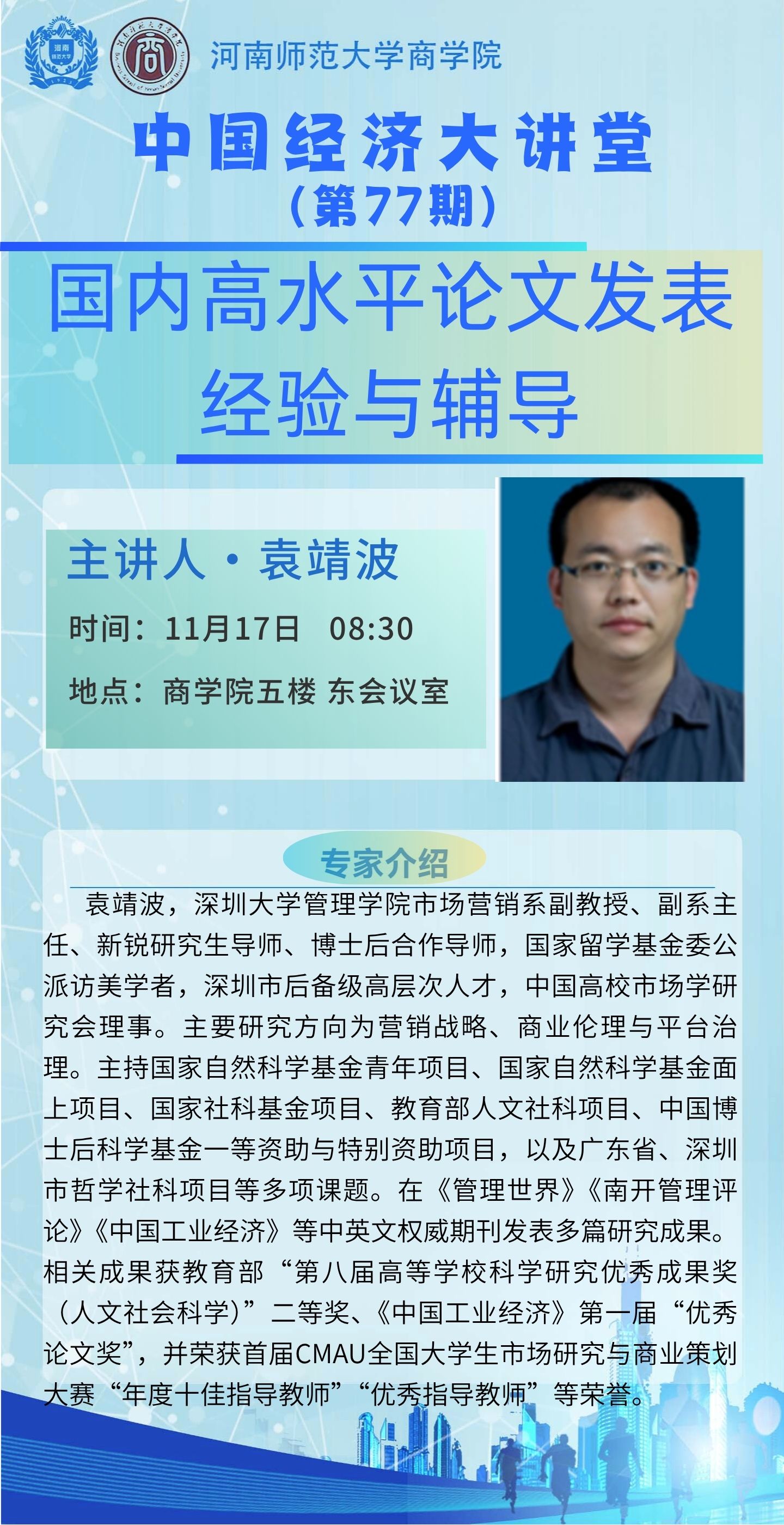 深圳大学袁靖波教授将应邀做客“中国经济大讲堂”