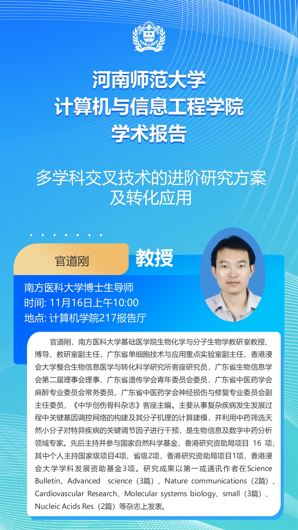 南方医科大学官道刚教授将应邀做客“智能科学”讲坛