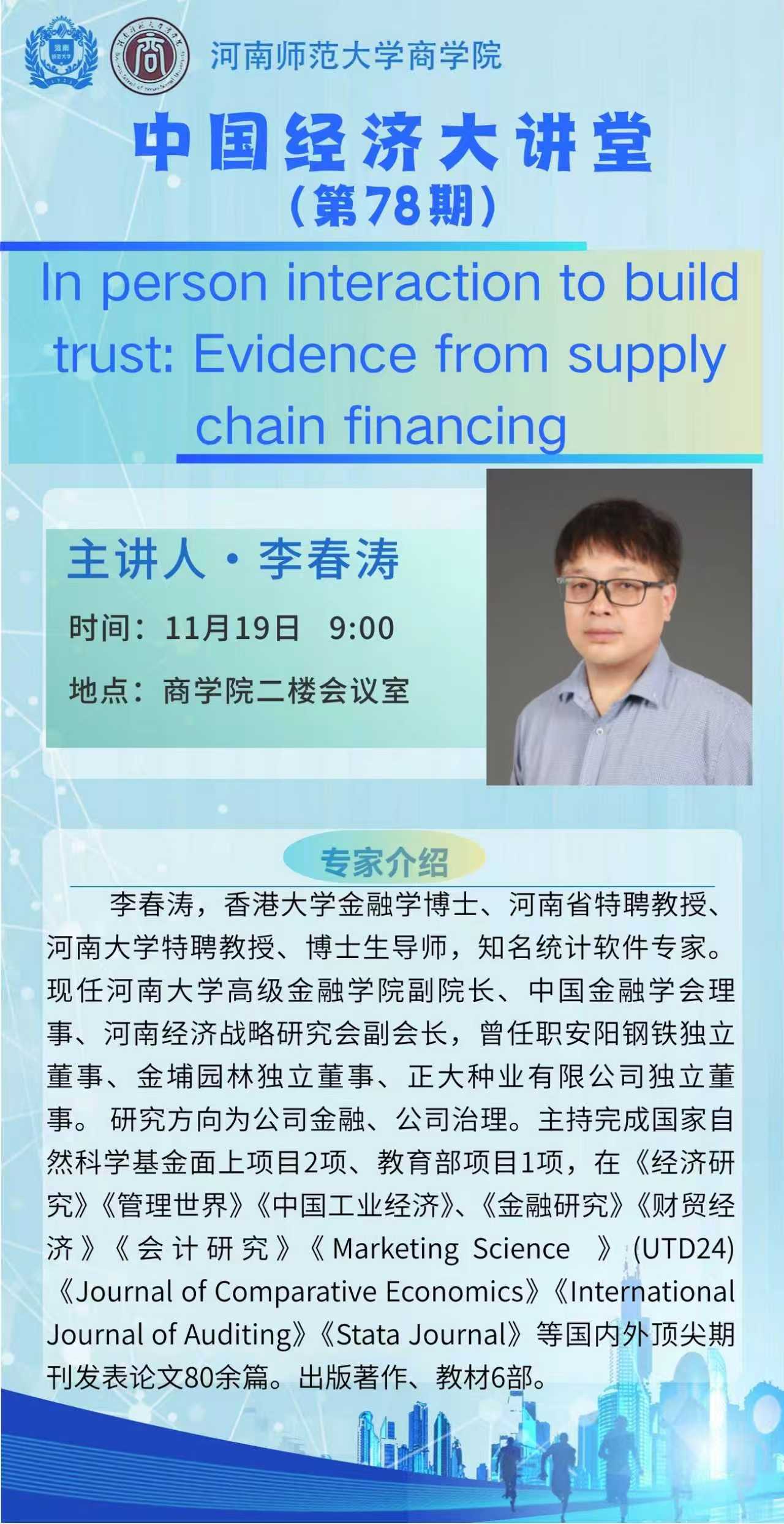 河南大学李春涛教授应邀做客商学院中国经济大讲堂