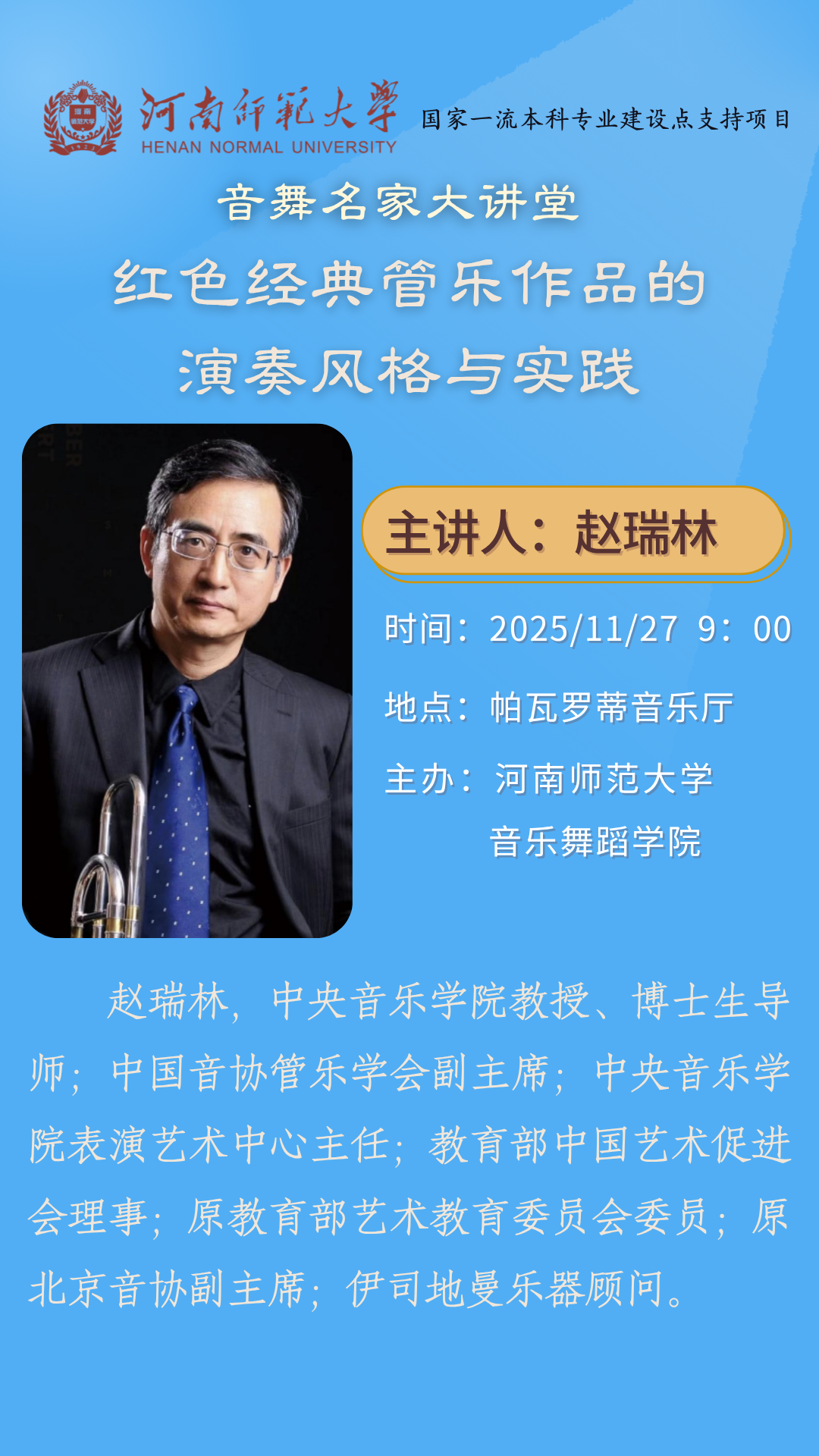 中央音乐学院赵瑞林教授将应邀做客“音舞名家大讲堂”