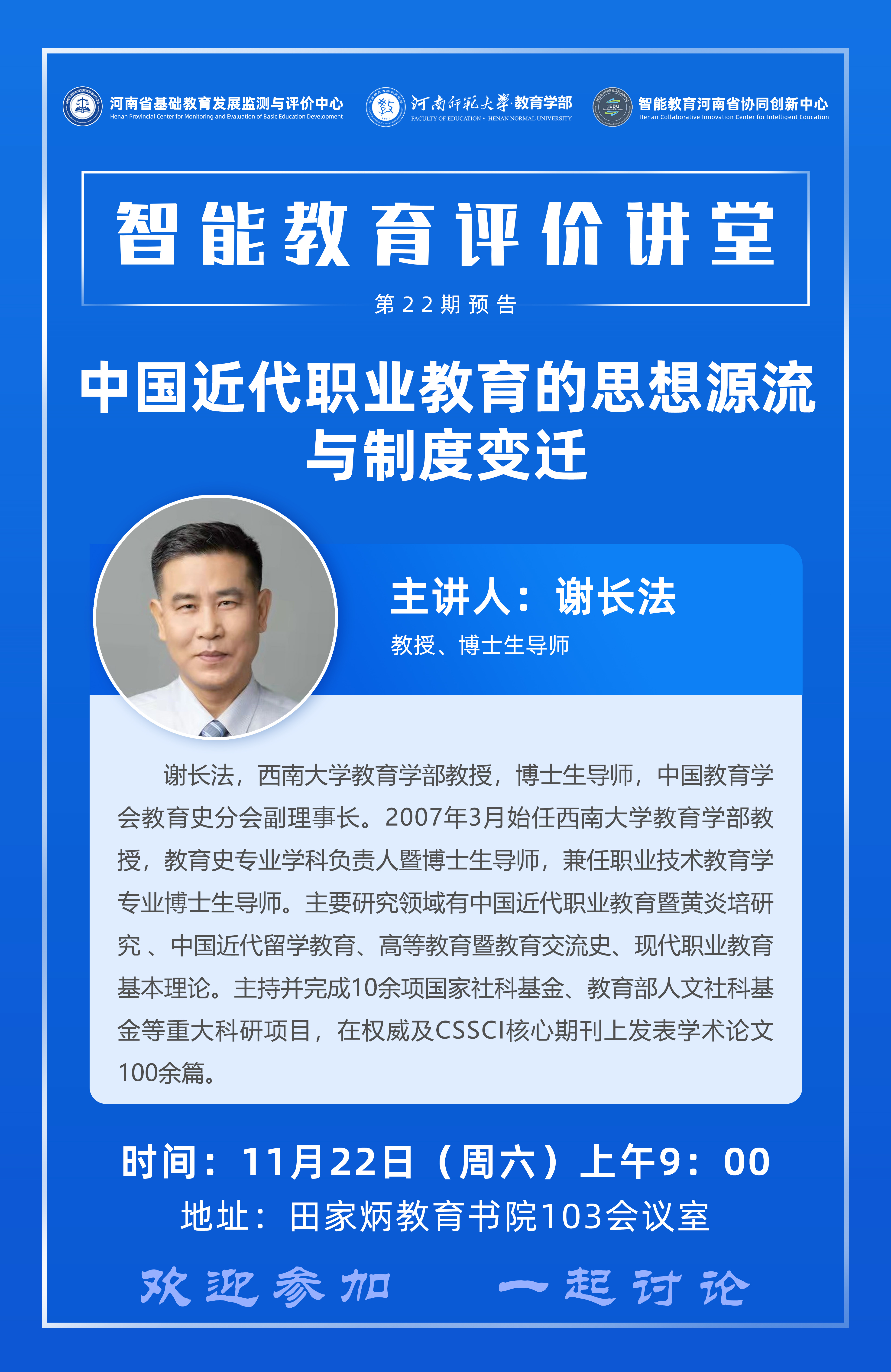 西南大学谢长法教授将应邀做客“智能教育评价”讲堂